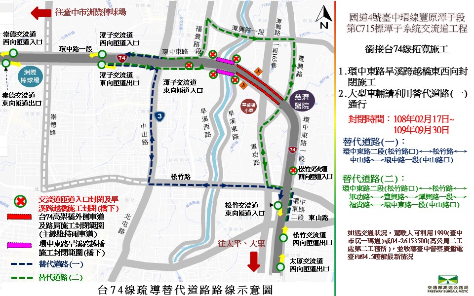 潭子系統交流道工程銜接台74線之拓寬施工作業交通管制時段及替代道路