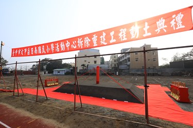 大甲區日南國小創校逾百年,原活動中心使用年限已久,經專業鑑定耐震能力不足,台中市政府爭取中央補助3,494萬4,000元經費,加上自籌款,投入總經費4,368萬元予以拆除重建,今(20)日舉辦動土典禮,預計今年底完工。市長盧秀燕表示,今天是日南國小「蓋新厝」大日子,期盼活動中心完工後提供孩子安全快樂的學習環境,市府也將持續充實校園設備,打造更優質的校園空間。