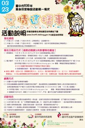 台中市108年單身民眾聯誼活動第1場次「愛情這檔事」自2月23日(星期六)上午8時起開放報名,歡迎踴躍報名參加!http://bit.ly/2E37EUt