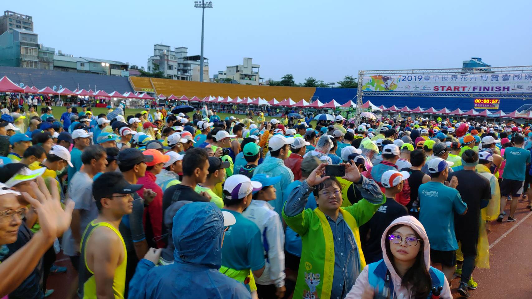 響應台中花博盛會,「2019台中世界花博國際公益馬拉松」串聯花博三大展區,規劃豐原、后里、外埔馬拉松路線,今(24)日上午6點30分於豐原體育場開跑,開跑時雖下起綿綿細雨,仍吸引1.5萬跑者共同聆聽花開的聲音。