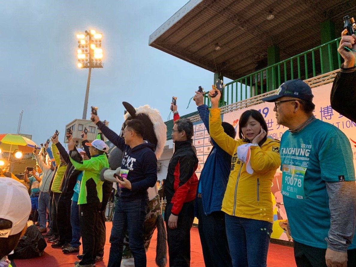 台中市政府運動局與大台中不動產開發商業同業公會、社團法人台中市繁榮葫蘆墩促進會共同主辦「2019台中世界花博國際公益馬拉松」,今日運動局長李昱叡、社團法人台中市繁榮葫蘆墩促進會理事長陳清龍、立法委員江啟臣及洪慈庸均共同到場為活動鳴槍,花博吉祥物石虎家族「歐米馬」也到場為跑者加油打氣。