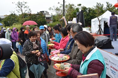 現場當日發放客家美食與民眾分享,色香味俱全的客家美食-五色粄,是由豐原在地陽明客家協會的媽媽們利用天然食材所製作,透過客家美食的呈現,也宣揚客家族群勤儉、惜物及崇尚天然的精神。(2/24*20)*客家事務委員會