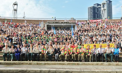 台中市童軍會今(6)日在圓滿劇場舉行「108年童軍節慶祝大會」,共4,000多位童軍參加,市長盧秀燕也穿上童軍服以童軍會會長身分主持,表揚17團全國評定績優童軍團。盧市長表示,她本身也是「資深女童軍」,將繼續保持服務社會的精神,擴大支持並補助童軍活動,傳遞日行一善理念,讓孩子受到良好的品德教育。