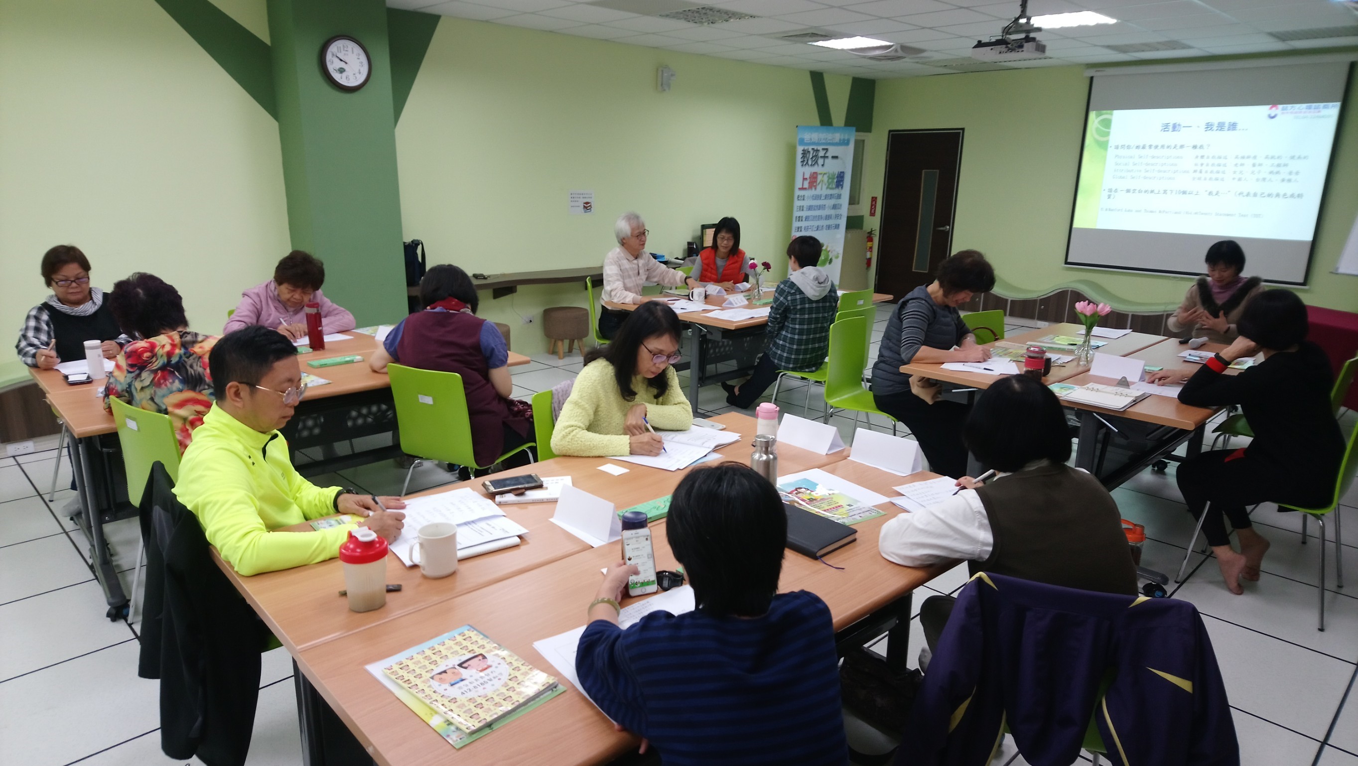 台中市家庭教育中心今(7)日舉辦自我探索與人際關係團體諮詢輔導課程,幫助志工在職訓練,讓老師和志工在團體中分享及探討人際關係,盼藉此增進志工輔導諮詢的專業服務品質。