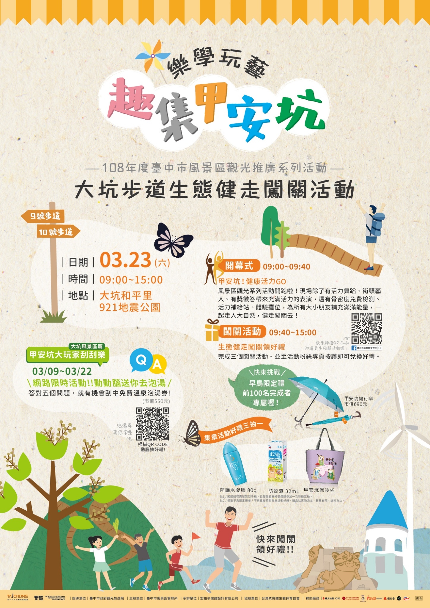 由市府運動局與台中市體育總會健行登山委員會共同主辦「全國Walking日-台中市108年度春季親子健行」將於3月9日上午8點在坪林森林公園開始健走,沿途步經森林公園步道,還能欣賞老樹成蔭的湖水光色,更透過呼吸芬多精提升體能並讓精神愉悅!