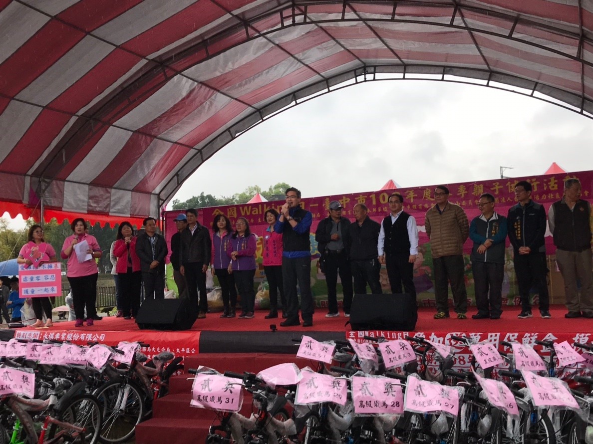 台中市政府運動局與台中市體育總會健行登山委員會今(9)日在坪林森林公園共同主辦「全國Walking日-台中市108年度春季親子健行」,現場安排環園健行、舞台表演、競走比賽、政令宣導、好禮摸彩等活動,運動局長李昱叡、市議員李麗華與數千人穿著象徵防制暴力的粉紅運動衫沿著森林公園步道健行,讓民眾健康運動並促進親子互動關係。