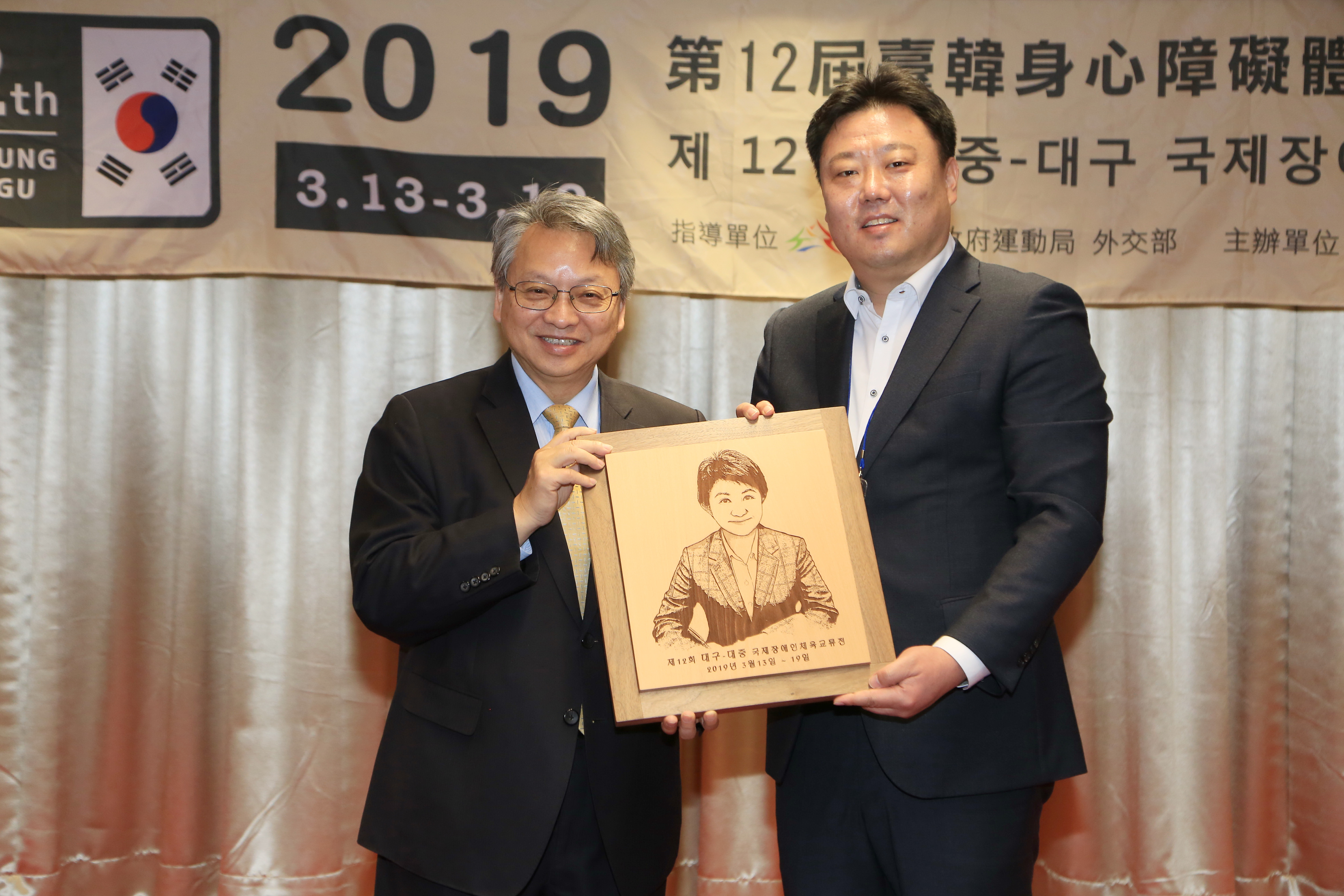 南韓大邱市身心障礙者體育會部長李再京表示,感謝市府、台中市身心障礙體育總會的邀請,以前身障交流體育會的賽事種類少,隨著發展逐漸增加項目;而現任大邱市長也很重視身障體育,5月將有新的身障體育館落成,很期待令狐副市長明年能夠到大邱參訪。