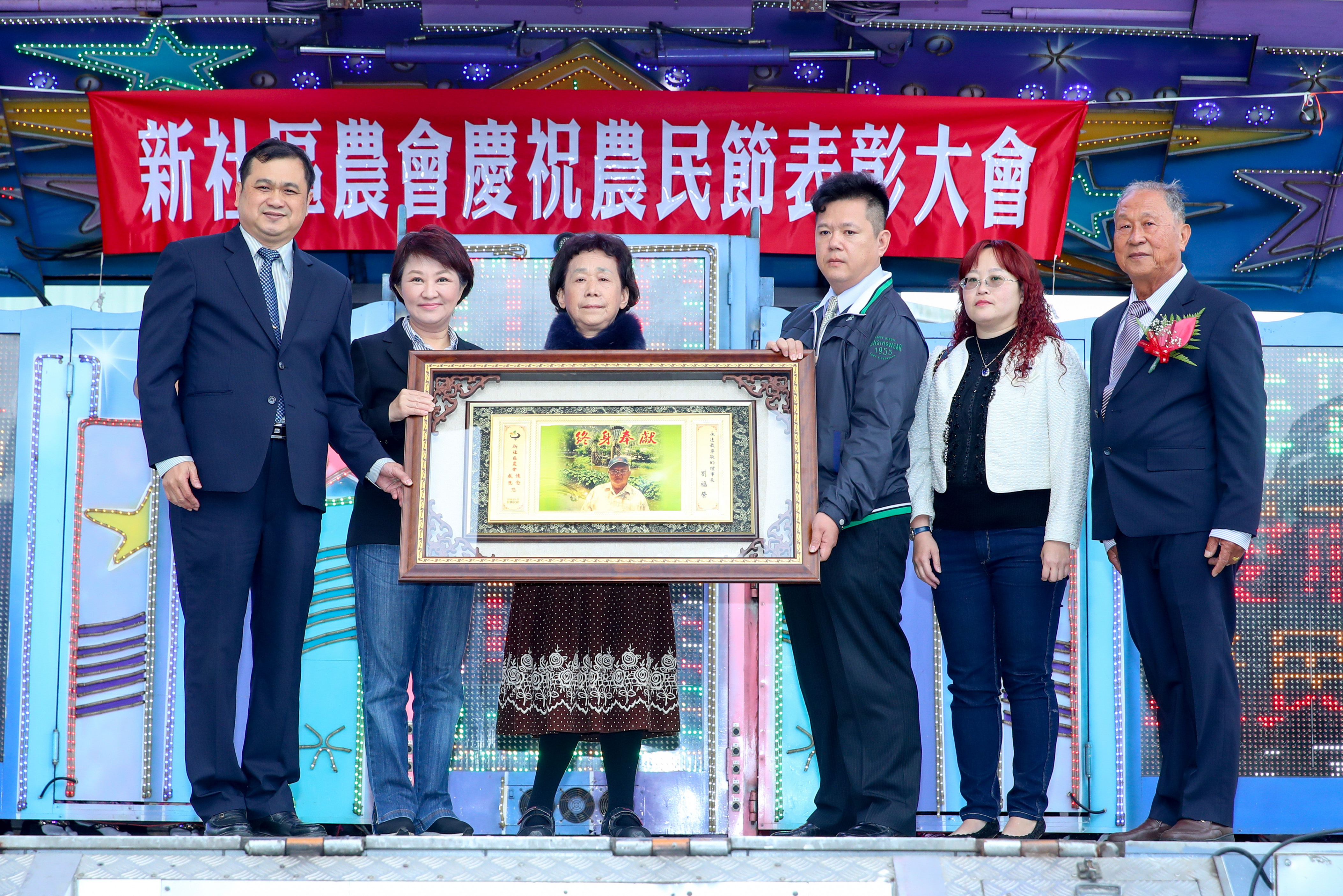表彰大會上,盧市長頒獎表揚第31屆全國十大神農獎得主廖秉鋐,已故新社區理事長劉福榮也獲得「奉獻獎」,主辦單位希望讓他生前為農業的努力,作為其他農民學習的典範,激勵更多農民突破傳統,帶動農業整體發展。