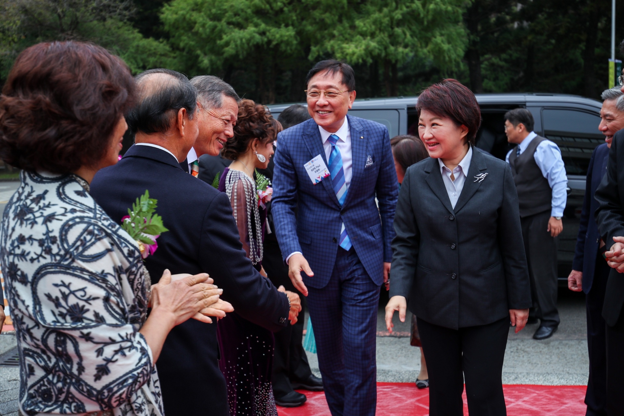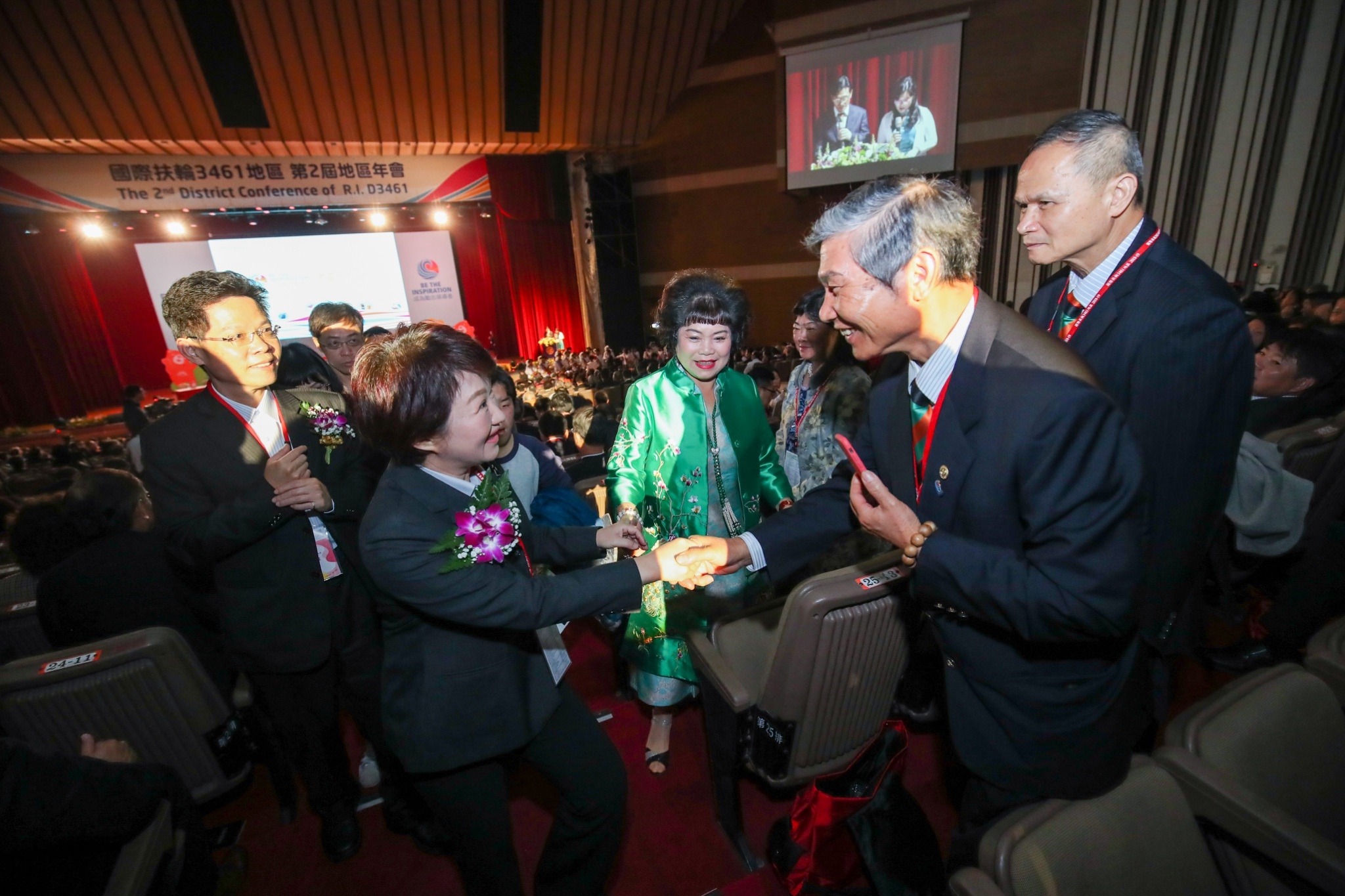 今日國際扶輪社3461、3462地區第2屆地區年會分別於中興大學惠蓀堂、葳格國際會議中心舉行,盧市長於社會局長李允傑的陪同下與會,受到扶輪社3461地區總監張光雄、年會主委楊金振、前副市長張光瑤、3462地區總監沈登贊、年會主委林俊杰等社友們的熱切歡迎。