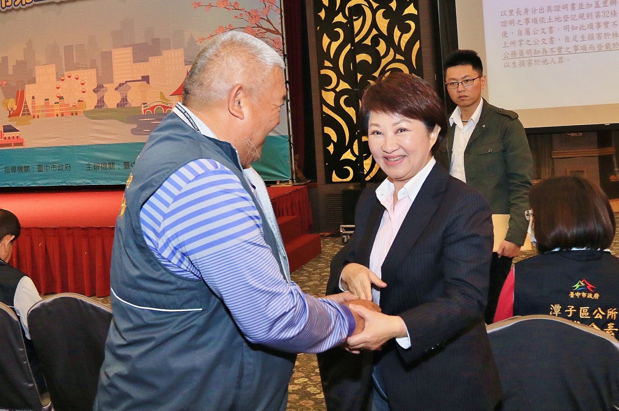 為提升里長為民服務效率,台中市政府民政局於今(18)日及3月22日各舉辦一場里長研習會,宣導市府政策、里長相關法令及權利義務,邀請山、海、屯、城區共625位里長參加。市長盧秀燕今日到場向里長致意,期待新市府團隊與里長形成夥伴關係,持續拼經濟,一起讓台中更好。