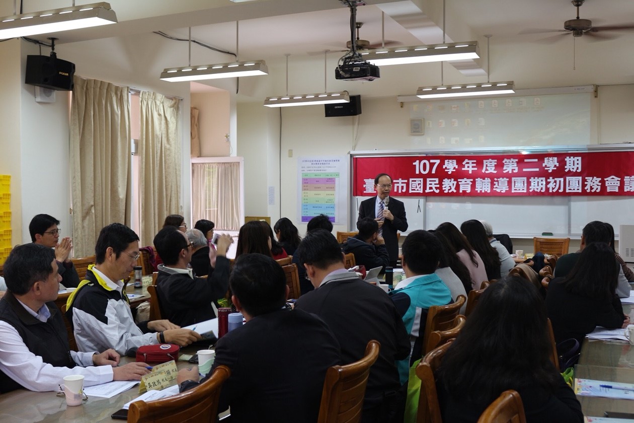 107學年度第2學期台中市國民教育輔導團期初團務會議今(18)日在大雅國中舉行,透過專業對話凝聚共識,確保輔導團全面穩健運作;教育局長楊振昇表示,將積極協助輔導員參加教育部總綱及領綱種子教師培訓,學年至少一次公開授課及帶領專業共備社群,精進教學品質,提升老師教學成效。