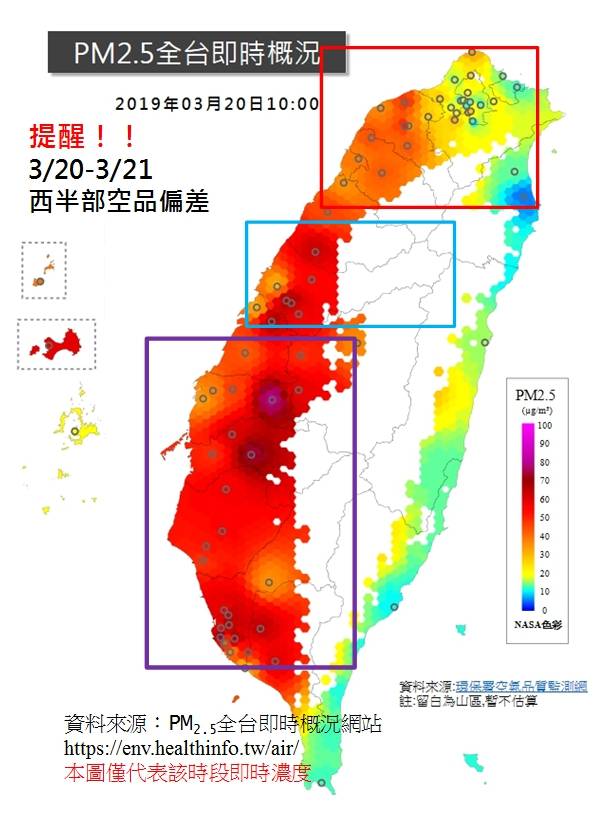 環保局提醒,請隨時注意空品狀況,敏感族群民眾或是老人、小孩等抵抗力較弱者,請減少劇烈活動,宜避免在戶外長時間活動,必要時應戴上口罩。掌握空品即時狀況可至《環保局空氣品質監測網》(http://bit.ly/1PYK6fP) 、《臺中市空氣品質資訊服務網》(https://aq.epb.taichung.gov.tw/TccgAIR/index.html )、《臺中空氣頻道》(http://bit.ly/2CXfbTZ)查詢。