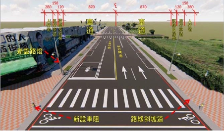 另外,以往道路交通強調車流順暢「以車為本」,但為讓人與車皆能公平合理使用道路,現代市區道路規劃的重點轉變為「以人為本」,強調人性化的都市空間與運輸系統相互結合,並兼顧民眾的安全與環境負荷,重新規劃設置無障礙的人行空間;同時串聯周圍綠空鐵道軸線計畫、新盛綠川水岸廊道計畫、台中大車站計畫、台中公園、一中商圈、城市之心、旱溪自行車道等,打造自行車道路網。