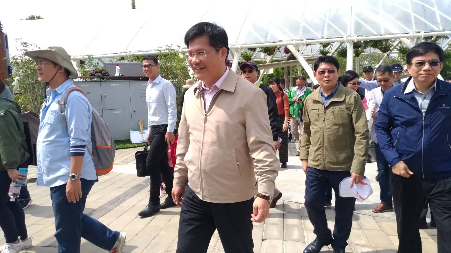 交通部林部長今日在台中市政府參議孫鍾興等人陪同下,陸續參訪后里馬場花舞館及森林園區。對於花博場館美學設計與多元巧思給予肯定,他並認為,未來交通部很多工程與服務可以結合花博理念,比如生態保育、綠色交通、美學設計等,透過場地借用讓場館永久保存,不用大興土木,只優化、不破壞,讓交通部的各項公共建設更有溫度。