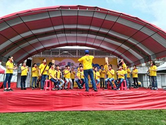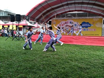 教育局表示,市府與國立自然科學博物館合作舉辦防災教育親子嘉年華,現場安排萬豐國小的舞龍隊、五福國小的童軍旗舞及益民國小的武術隊表演,氣氛熱鬧。