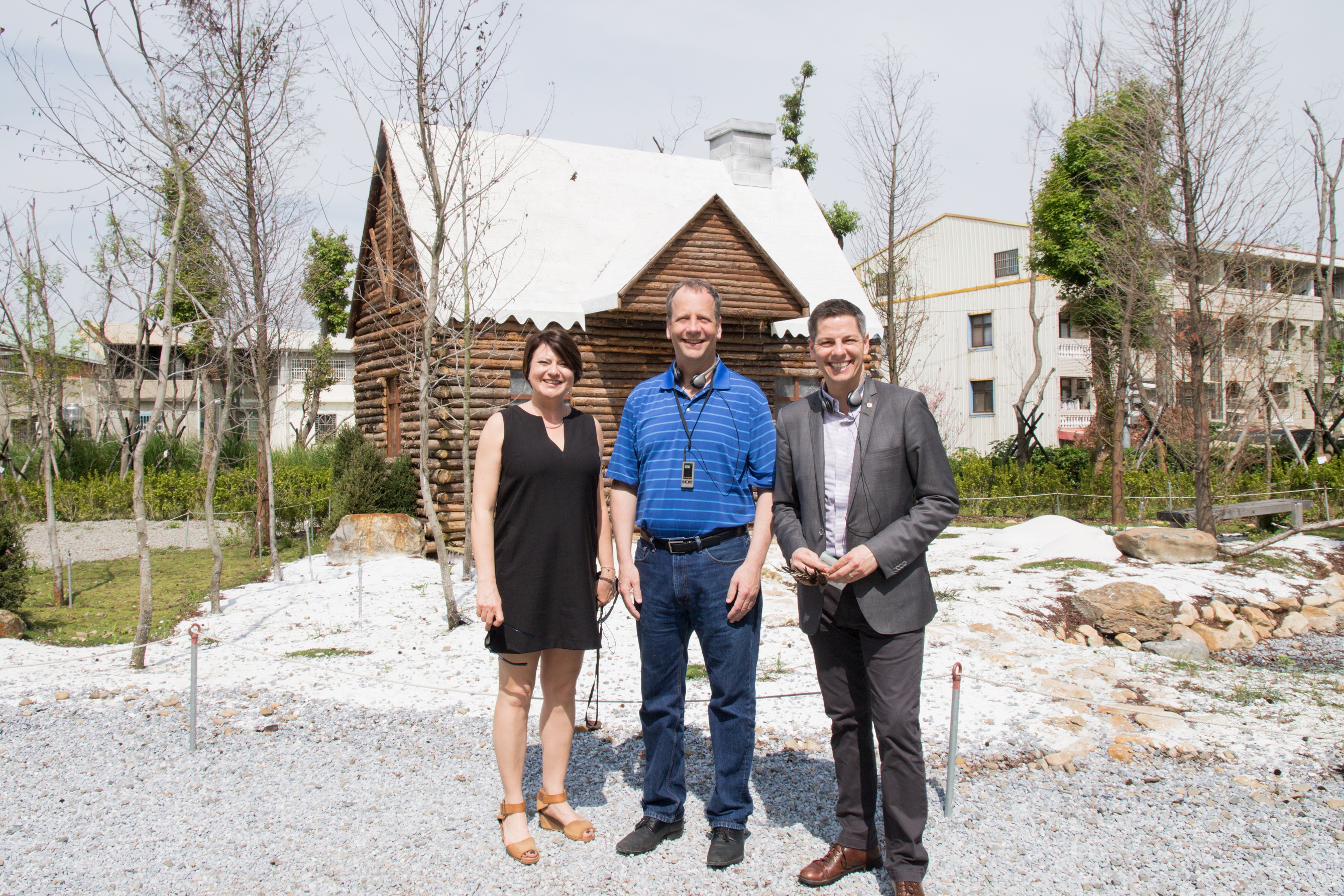台中1982年與加拿大緬尼托巴省首府溫尼伯市締結為姐妹市,為深化兩市情誼,溫尼伯市長Brian Bowman、溫尼伯市議員John Orlikow、溫尼伯市府禮賓官Lisa Blake等三人昨日特別拜會台中市政府,今日更在花博森林園區副園長蔡青宏陪同下參觀花博森林及馬場園區。