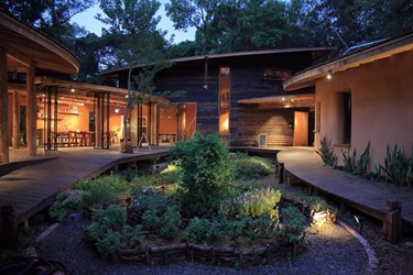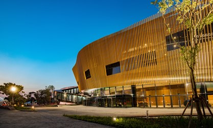 森林園區的「發現館」則使用綠色建材再生塑化磚為建材,呈現鏤空視覺、空氣可流通的明亮空間,並與現有老樹融為一體,遊客可歷經從海拔0的出海口至3,886公尺雪山山頂的大甲溪生態之旅,還有深具視覺震撼的劇場展演,同時藉由館內的溫度與溼度控制,也能感受到出海口的溫暖濕意及雪霸山林的冷冽氛圍,彷彿親臨其境。