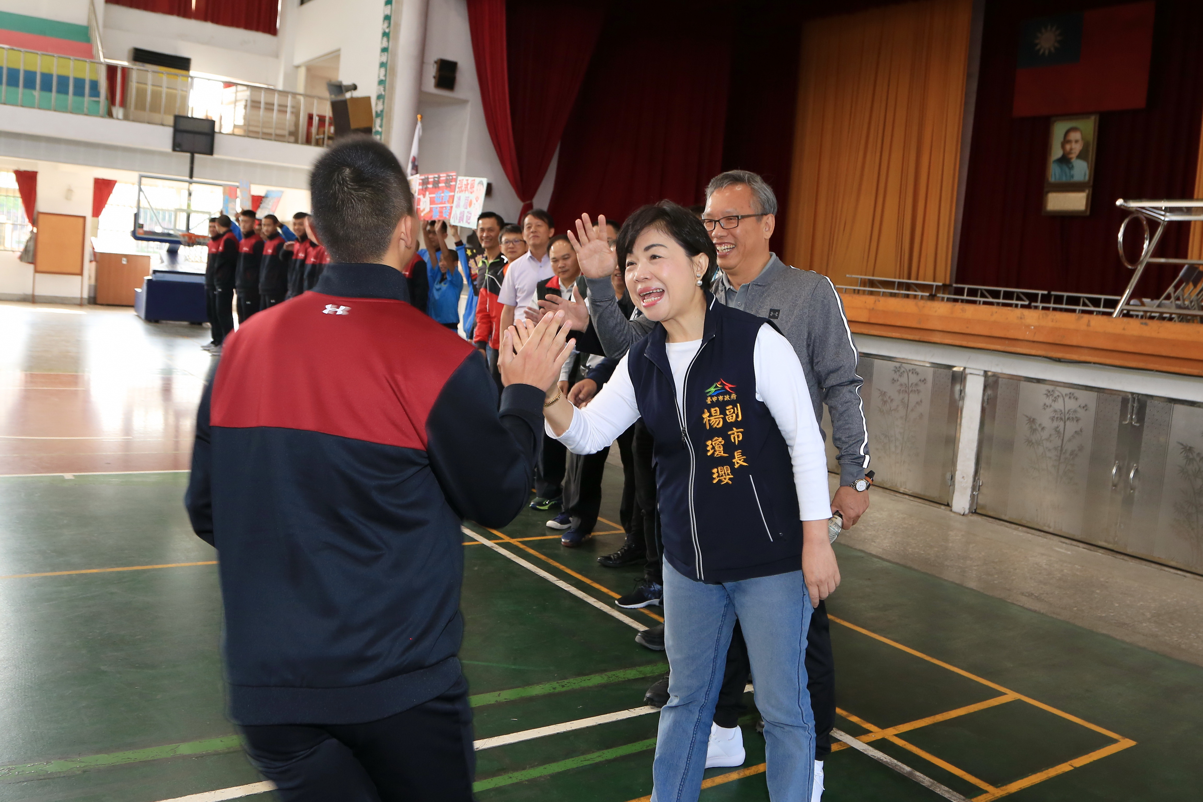 台中市神岡國中體育班籃球隊成軍3年,首闖國中籃球聯賽(JHBL)前八強,4月15日將前往台北移地及參賽,副市長楊瓊瓔今(12)日一早前往神岡國中,為準備北上的球員加油打氣並授旗,鼓勵選手們發揮實力,旗開得勝再創佳績。
