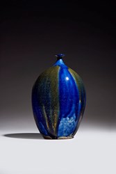 會後該聯誼會特別將十傑之一,藝術家李仁燿創作作品細口瓶「藍韻」贈與台中市政府典藏,市府則回贈花博文創紀念品及在地梨山茶葉禮盒。(4/13*3)*文化局