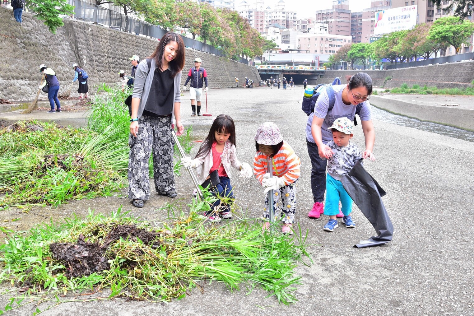 許多員工也帶著孩子一起參加,與大人一起動手清理雜草、垃圾,水利局也向小朋友解釋河川防洪功能,說明常見的人為汙染,盼藉此體驗讓環保觀念向下紮根,也理解淨川人員的辛勞,上了一堂最有意義的環境教育課。
