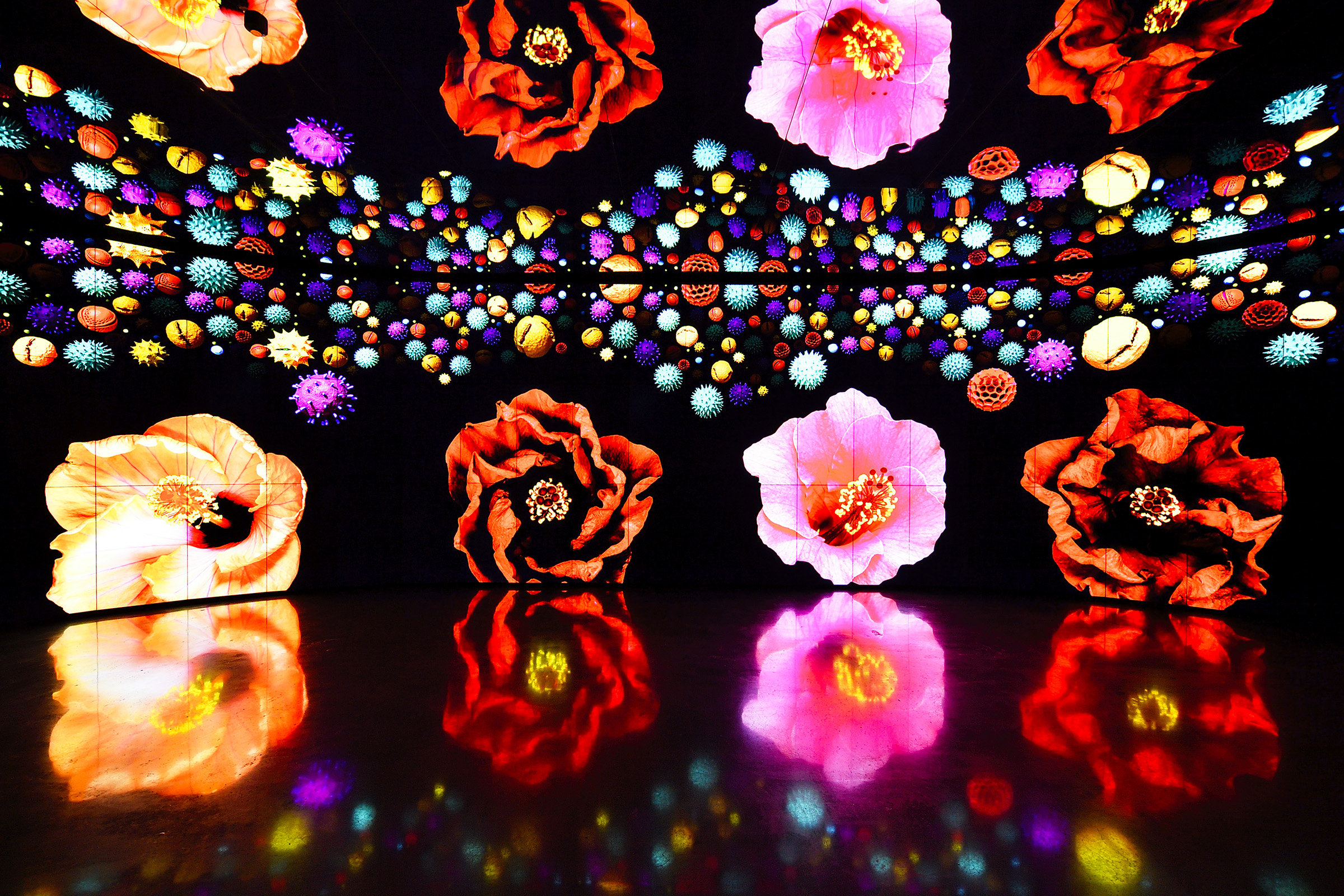 還有全台首棟用稻稈綑搭建的永續建築「四口之家」,更連續獲得2019德國iF設計獎、2018美國建築大師榮譽獎、2018倫敦設計銀獎、2018紐約設計銀獎、2018美國IDA設計銅獎等5國際獎項;「友達微美館」內則有全台最大556吋電視牆,以花粉顯微影像為創作素材,呈現繽紛多姿的動態影像,為花博人氣的打卡景點。