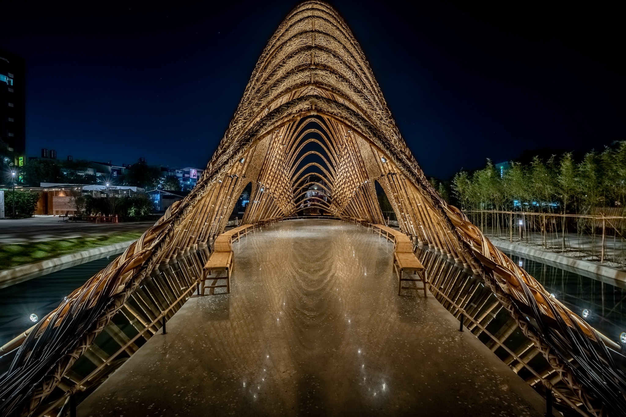 外埔園區則擁有全長約19公尺、最高5公尺的「石虎花車」,為106年國慶票選全台人氣第一的冠軍花車,也是園區的入口意象;至於高10公尺的豐原葫蘆墩公園「竹跡館」,是全台最大竹建築,它以竹子打造中央山脈的意象,曾入圍有建築奧斯卡之稱的「WAF世界建築獎」。