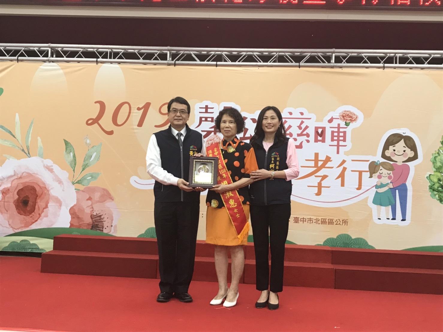 台中市北區公所今(4)日舉辦「108年度模範母親暨孝行楷模表揚活動」,共36位模範母親及19位孝行楷模接受表揚,市府秘書長黃崇典也代表市長盧秀燕出席祝賀,場面溫馨。現場公所也邀請受表揚的模範母親及孝行楷模與家人一起大聲說「媽媽我愛您」,藉此呼籲民眾愛要及時。