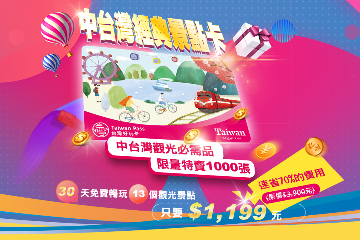 台中市政府觀光旅遊局搶搭春遊熱潮,加碼推出台中經典景點卡(13合一)主題套票,5月15起在中台灣好玩卡官方網站開賣,首波限量販售1,000張。觀旅局指出,原價3,900元,限時優惠價只要1,199元。中台灣經典景點卡是一張旅遊悠遊卡外,可自由遊玩中台灣7縣市13景點,憑此卡還能取得特約店家的專屬優惠,可說是小資旅行、親子出遊的必備好工具。