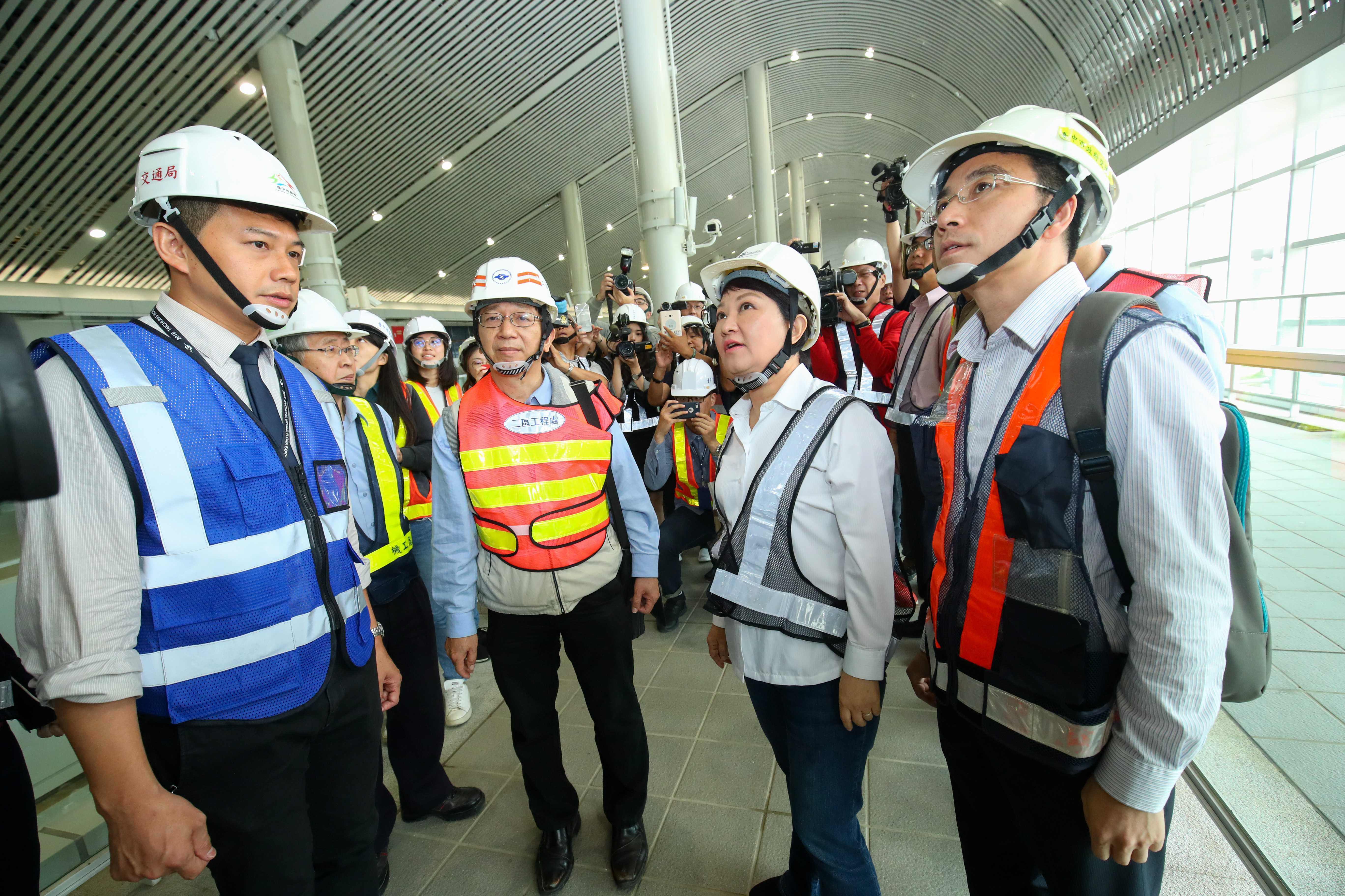 盧市長今日在交通局長葉昭甫、台中捷運公司董事長林志盈等人的陪同下,視察捷運綠線工程,盧市長從捷運北屯總站(G0)搭乘電聯車至捷運台中高鐵站(G17),並由台北市政府捷運工程局全程解說。