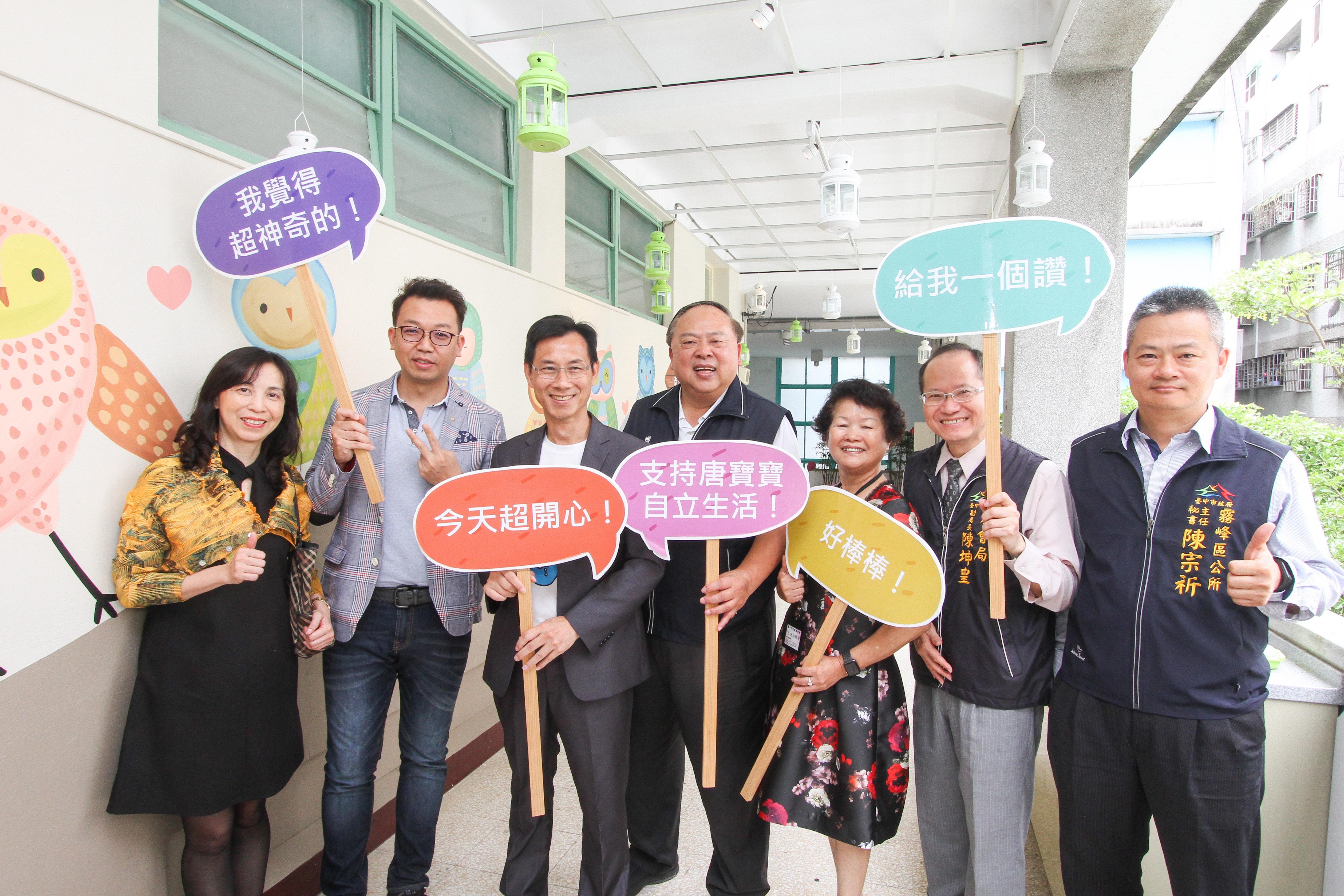 唐氏基金會林董事長表示,霧峰區小作所是唐氏症基金會在全國開辦的第9處小作所。霧峰在地的吉祥物是貓頭鷹,因此3間小作所教室也結合地方特色,以貓頭鷹為主題,增添許多可愛動物彩繪,提供舒適溫暖的空間,希望讓身障朋友快樂學習。