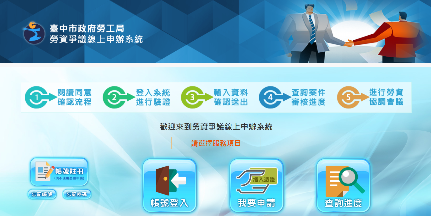 為便利民眾、減少交通往返時間,台中市政府勞工局「線上勞資爭議調解申請」除原有以自然人憑證或工商憑證連線申請外,今(13)日起推出「帳號註冊」快速辦理線上勞資爭議調解申請。此外,線上申請調解時,也提供計算工時加班費、資遣費、特休與舊制勞退試算表的試算網頁連結,可同時進行多項權益試算,歡迎多加利用。