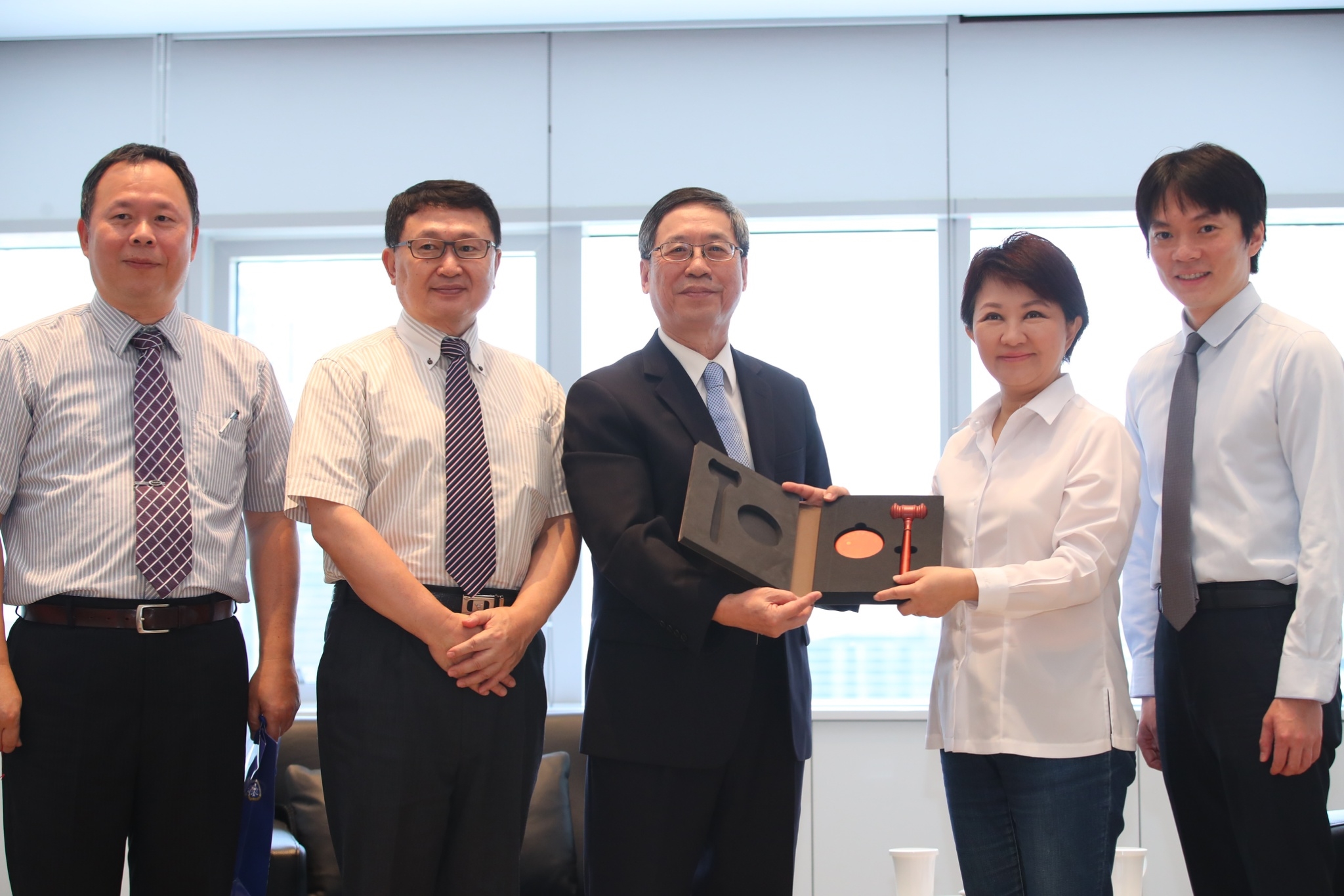 台灣台中地方法院院長江錫麟今(13)日率隊拜會市府,與市長盧秀燕、法制局長李善植共同針對「訴訟程序視訊諮詢」服務進行意見交換。
