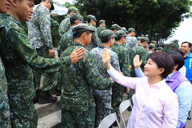 盧市長表示,她和區長、議員們代表台中市的役男家庭們,感謝成功嶺長官們對役男的照顧及用心,讓役男們在服役期間堅強體魄,成熟懂事,台中市的役男擁有高素質,一定會有良好表現,同時期勉各位役男自我調適,儘速適應團體生活,以樂觀的態度迎接任何挑戰。