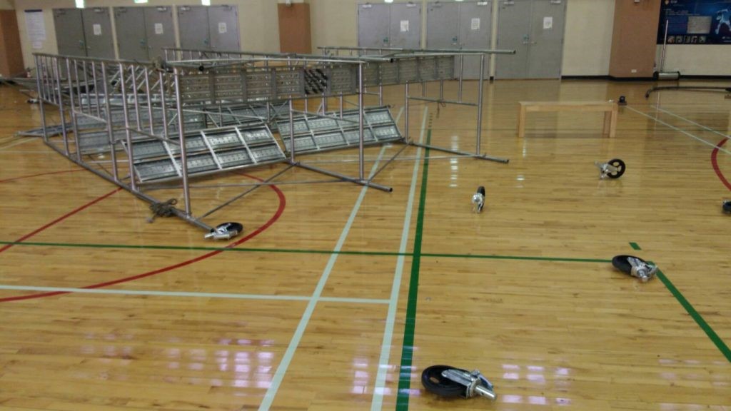 而裝有腳輪的移動式施工架,其腳部應以有效方法固定,勞工在施工架上作業時不得移動施工架。雇主及勞工朋友如需協助,皆可洽詢台中市勞動檢查處,將提供免費的輔導工作。