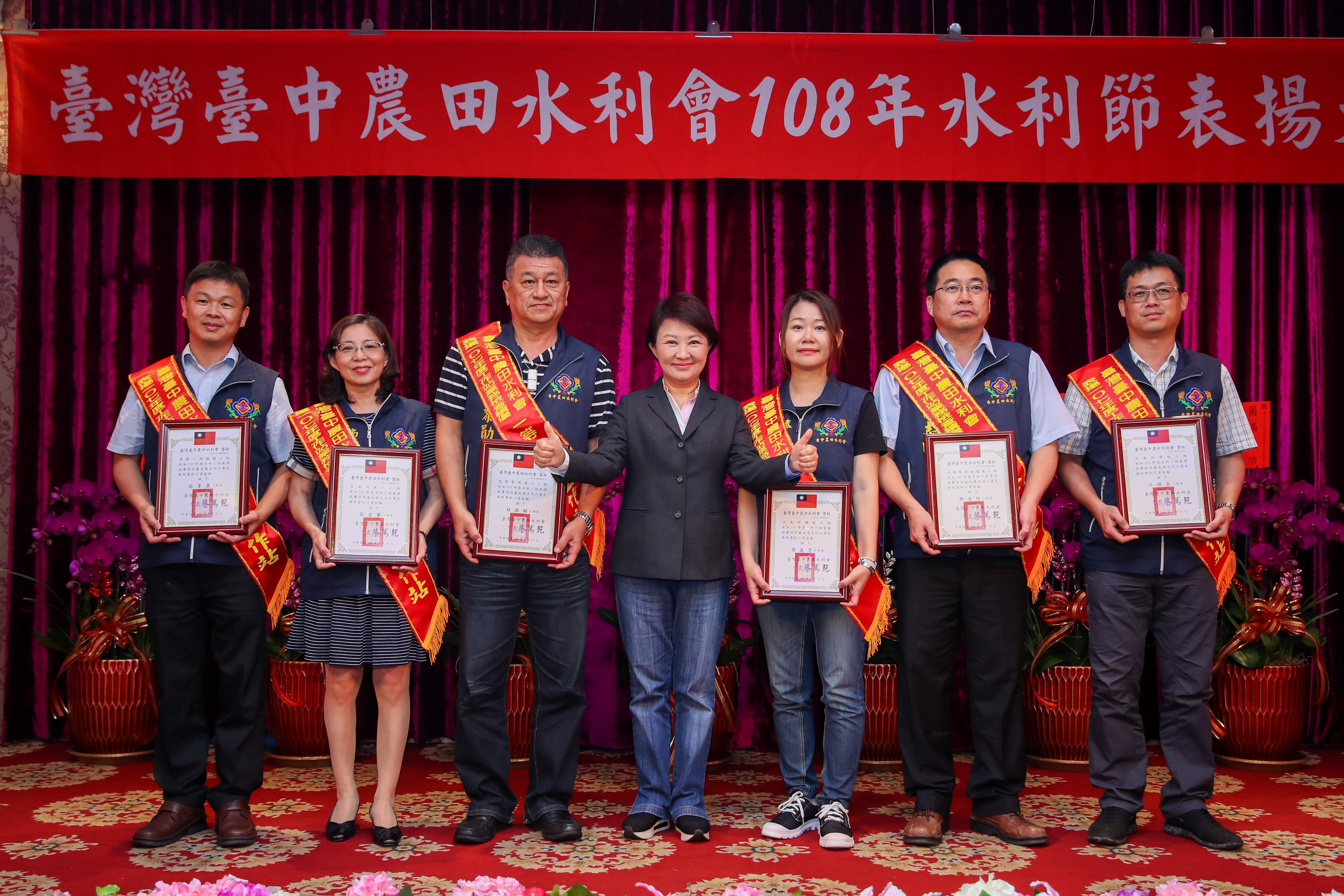 今日的表揚大會在北屯區舉行,表揚107年度水利小組業務競賽團體績優工作站6站、107年度水利小組業務競賽績優水利小組長90名、107年度工作站業務檢查績優工作站6站、108年台灣地區農田水利會績優人員30名、108年台中農田水利會績優人員51名。盧市長、台中農田水利會長蔡篤乾等人均到場祝賀。