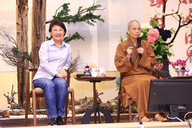 市長盧秀燕昨(4)受邀擔任佛光山惠中寺「未來與希望系列講座」主講人,以「關鍵少數的無畏力量」為題,與惠中寺覺居法師對談。覺居法師盛讚盧市長「跳脫小愛框架,轉變為利益百千萬人的非典型女性」。盧市長則強調「有愛就無畏!」當媽媽的人愛孩子,因此「為母則強」,她愛台中市民,抱持著無畏的勇氣面對許多問題,也感謝市民願意給女性承擔市政的機會。