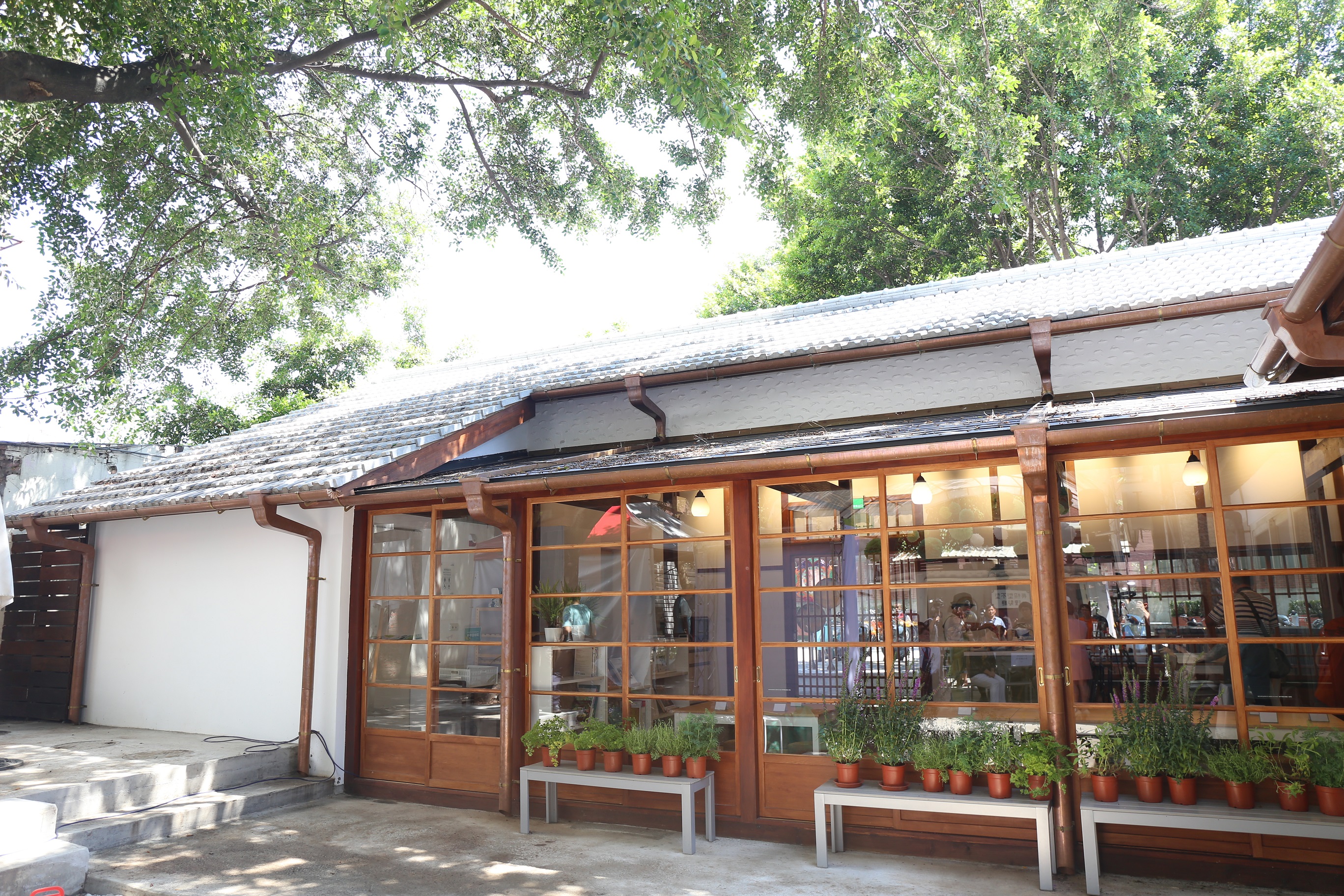 弘道老人福利基金會王董事長說,他們在3年前從市府手中接管「不老夢想125號」之後,規劃成兼具展覽與餐館等複合式功能的場館,然而館內有許多附屬木構建築因白蟻蛀蝕而沒辦法開放使用,只能在戶外規劃用餐區,提供古早味碗粿及醃漬蘿蔔乾等簡易餐食。