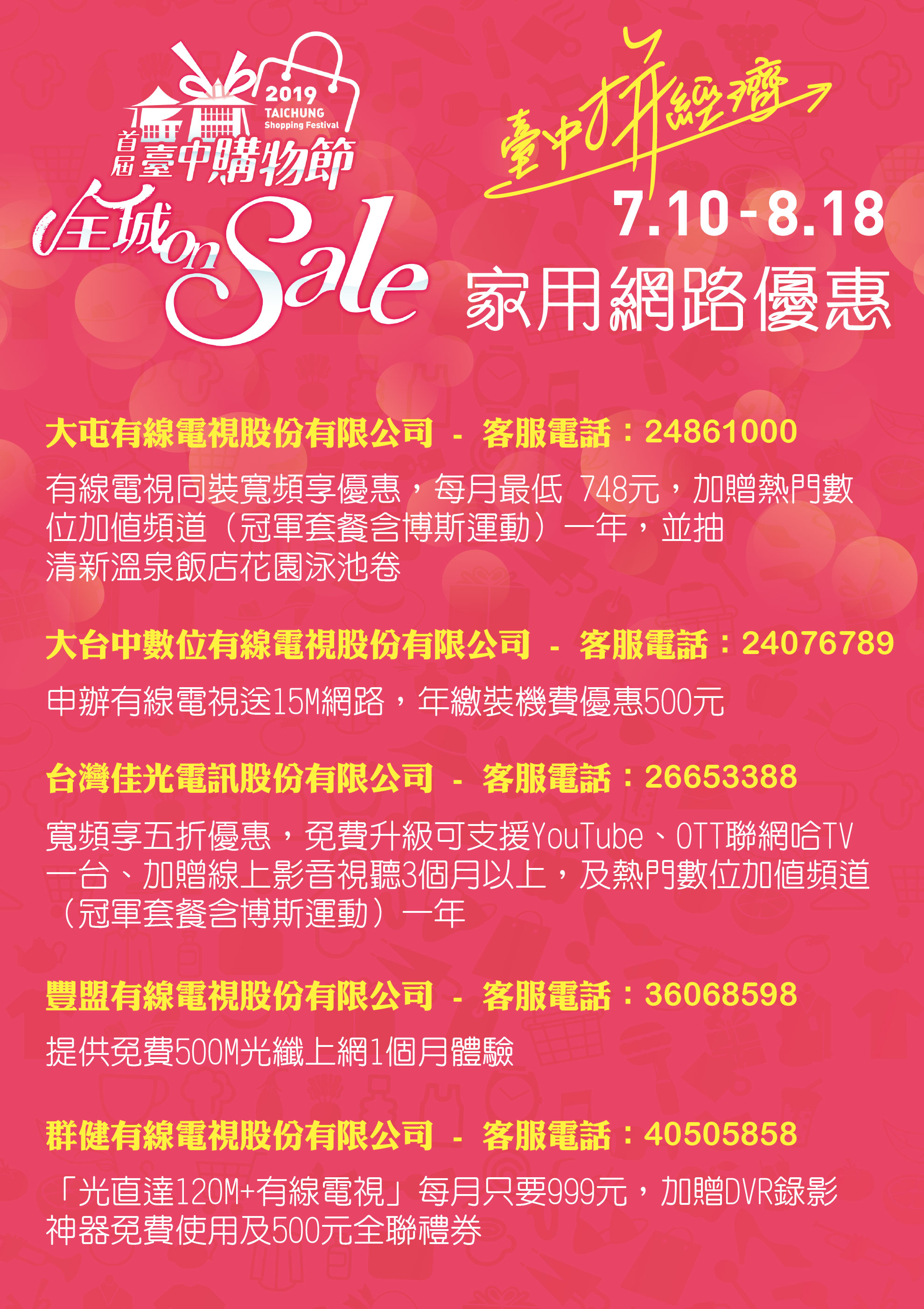 台中購物節全城優惠不斷 有線電視祭出家用上網多項優惠