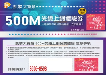 首屆台中購物節將於7月10日至8月18日登場,以「全城打折」為主題刺激消費,期間家用網路也有優惠!新聞局長吳皇昇表示,繼台中10大影城響應回饋觀影者等優惠後,台中有線電視業者也加入優惠行列,提供家用網路折扣或加碼送措施,讓民眾可用超低優惠價享受高速飆網的樂趣。