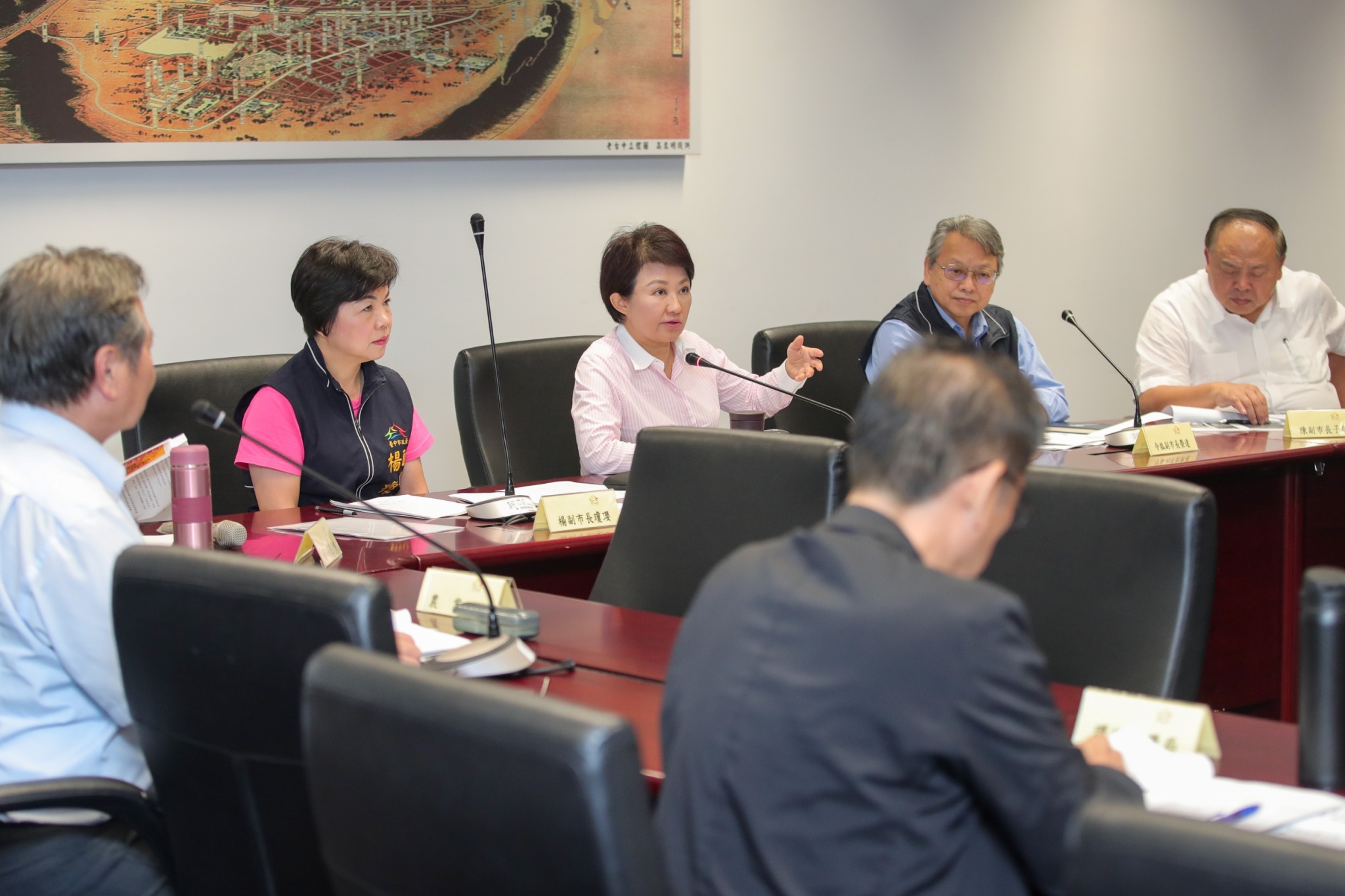 盧市長昨(13)日下午議會備詢結束後,隨即返回市府主持「台中市政府秋行軍蟲監控處理小組成員及分工研商會議」,討論秋行軍蟲通報作業流程、秋行軍蟲災害緊急防治作業流程等,副市長楊瓊瓔、令狐榮達、陳子敬、秘書長黃崇典等人都出席與會。今日會中正式成立秋行軍蟲監控處理小組,並決議由楊副市長擔任召集人、市府農業局長蔡精強擔任副召集人。