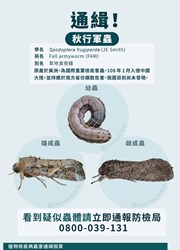 農業局表示,秋行軍蟲是聯合國糧農組織全球預警的重要農業害蟲,遷移能力強,且寄主範圍廣,原分布於美洲熱帶和亞熱帶地區,105年傳入非洲後,107年迅速蔓延至亞洲葉門、印度、孟加拉、緬甸、泰國、斯里蘭卡,108年至中國大陸部分地區。
