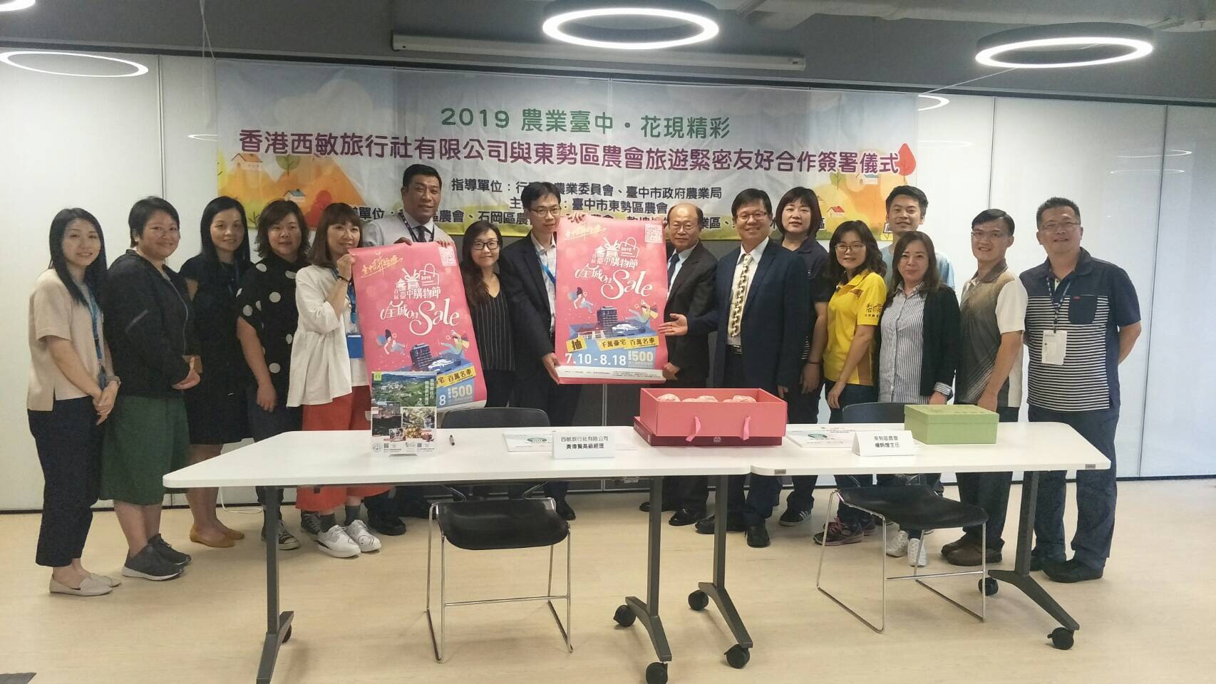 休閒農業拚經濟!台中市政府農業局輔導多家地區農會前往香港參加「2019香港旅展及觀光推廣活動」,推廣台中農業休閒旅遊,其中東勢區農會與香港在地旅行社簽署合作備忘錄,加深雙方旅遊交流,將邀請香港遊客7月到台中參加梨果季及台中購物節,享受採果及購物樂趣。