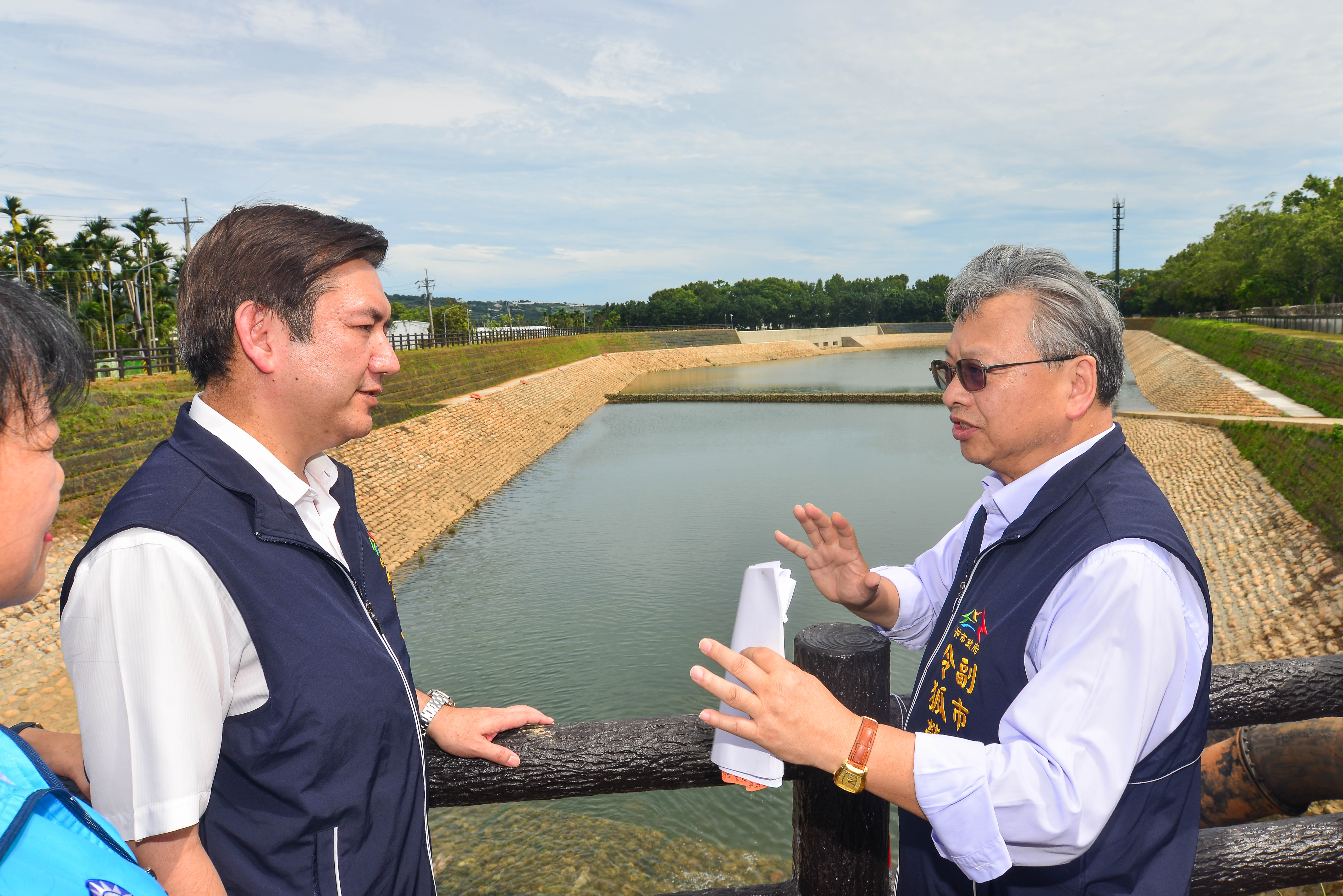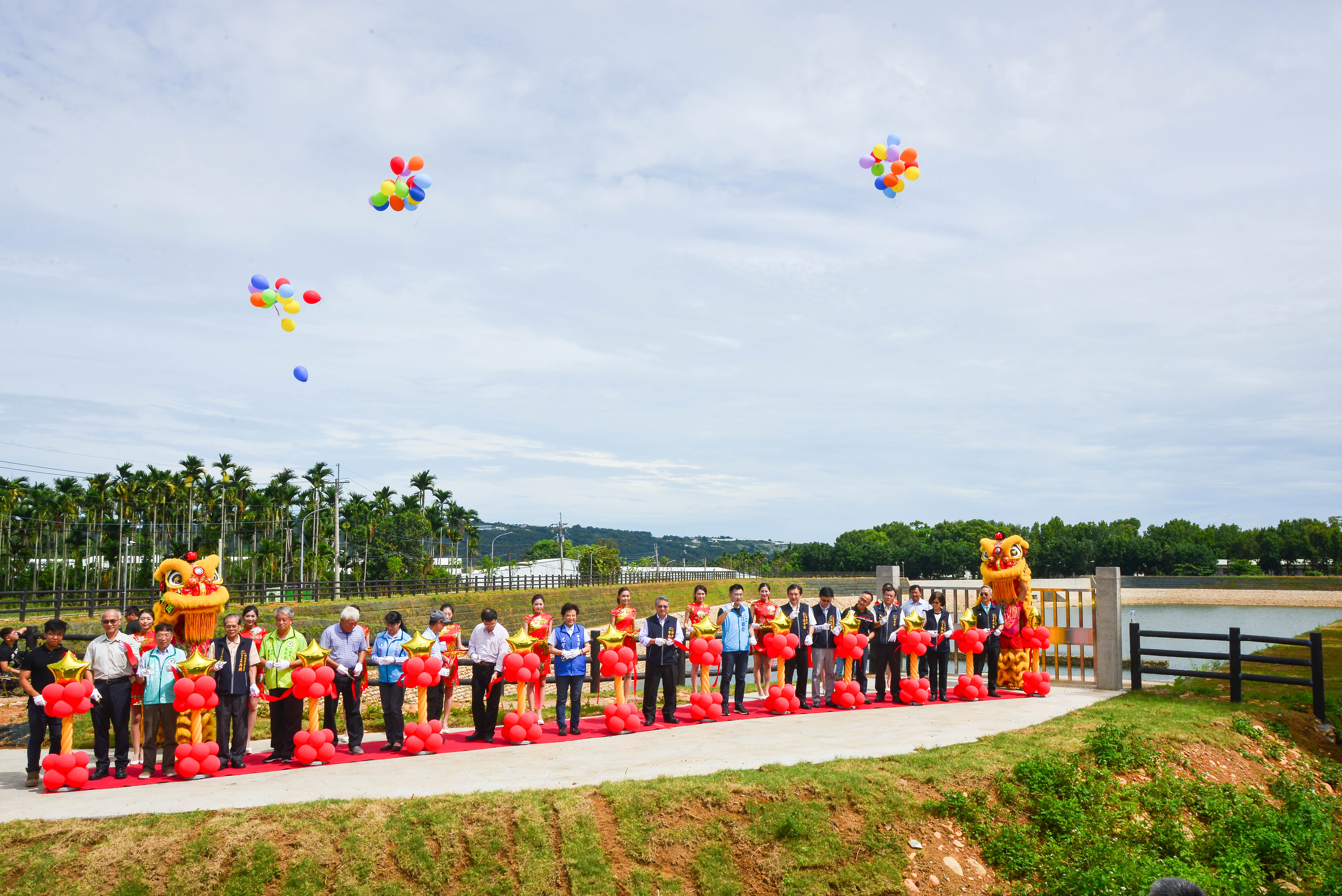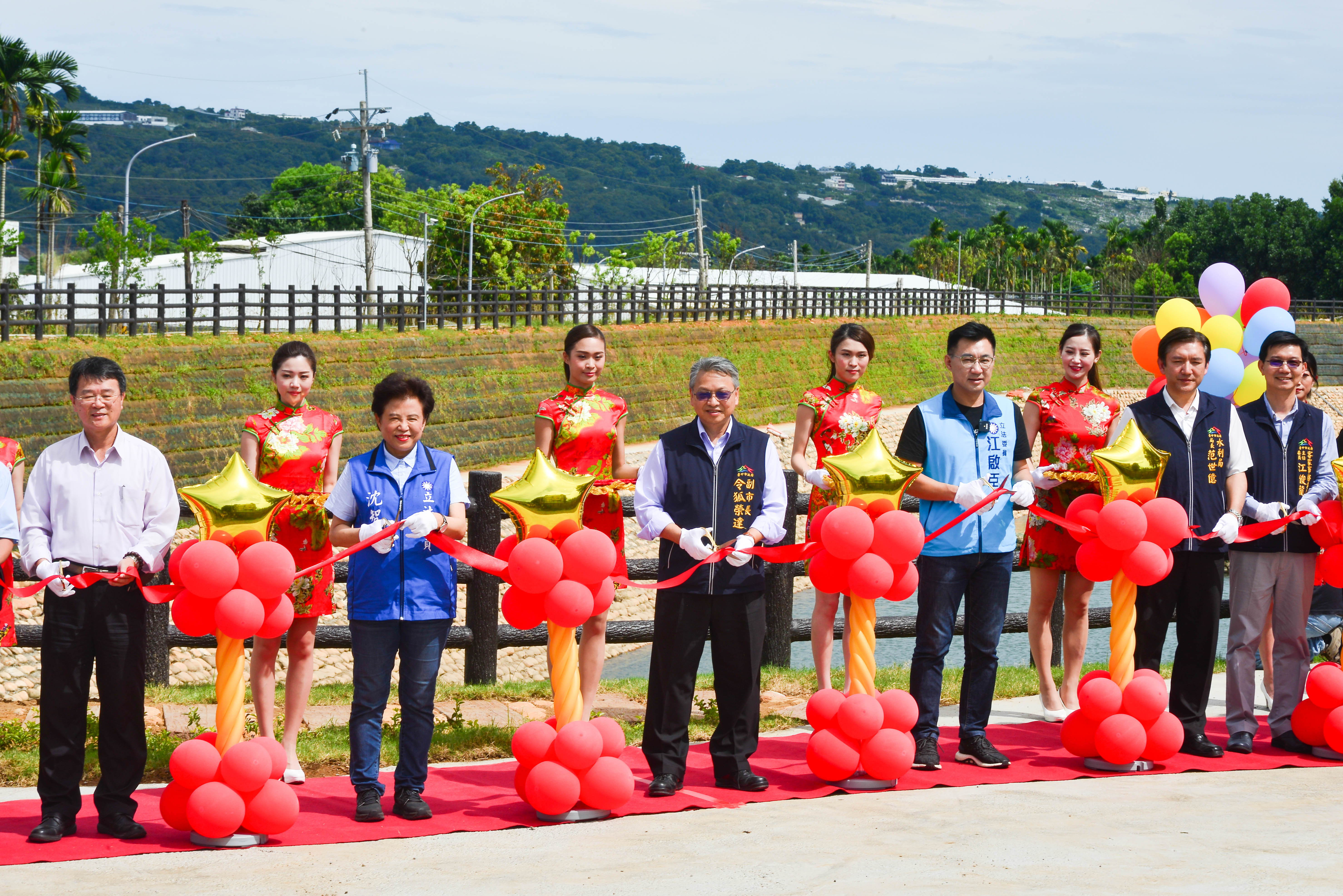 令狐副市長今日在水利局長范世億的陪同下,出席「新社區九渠溝滯洪池工程完工」落成典禮,包括立法委員江啟臣、沈智慧、市議員冉齡軒、蔡成圭、水土保持局長李鎮洋、水土保持局台中分局分局長黃振全、種苗改良繁殖場祕書黃少鵬、台中農田水利會大南工作站站長溫榮裕、新社區公所區長林淑惠、北屯區公所區長李印欽等人均到場,市議員曾朝榮也派代表出席,新社區、北屯區多位里長均與會。