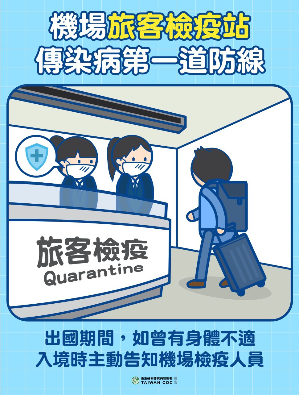 曾局長也呼籲,返國時如果有發燒、嘔吐、腹瀉、皮膚出疹、骨頭關節酸痛、肌肉痛或呼吸道不適等疑似傳染病症狀,入境時應主動告知機場檢疫人員,而返國後21天內有上述症狀或其他身體不適情形,也請盡速就醫,並告知醫師旅遊史及接觸史。