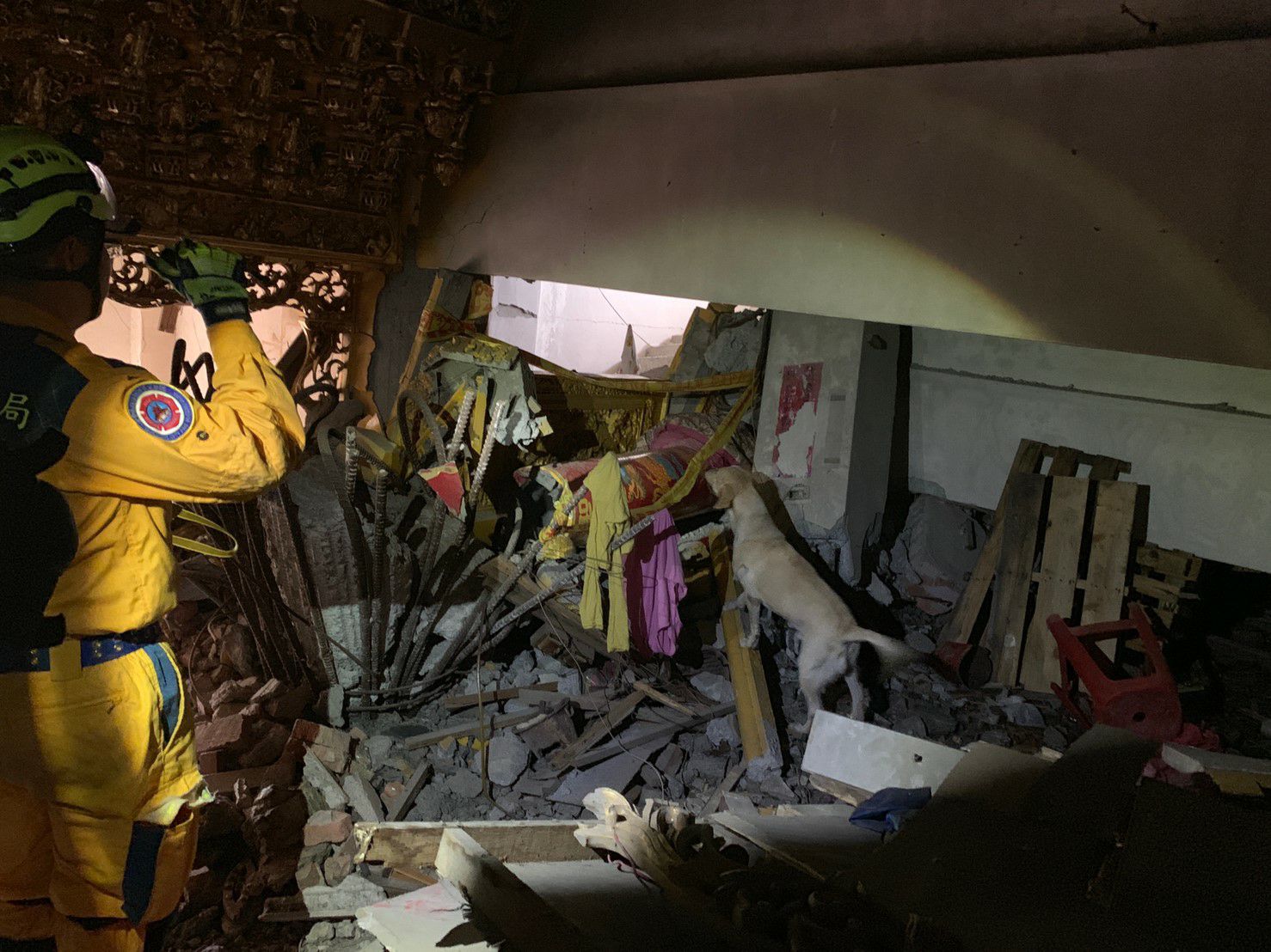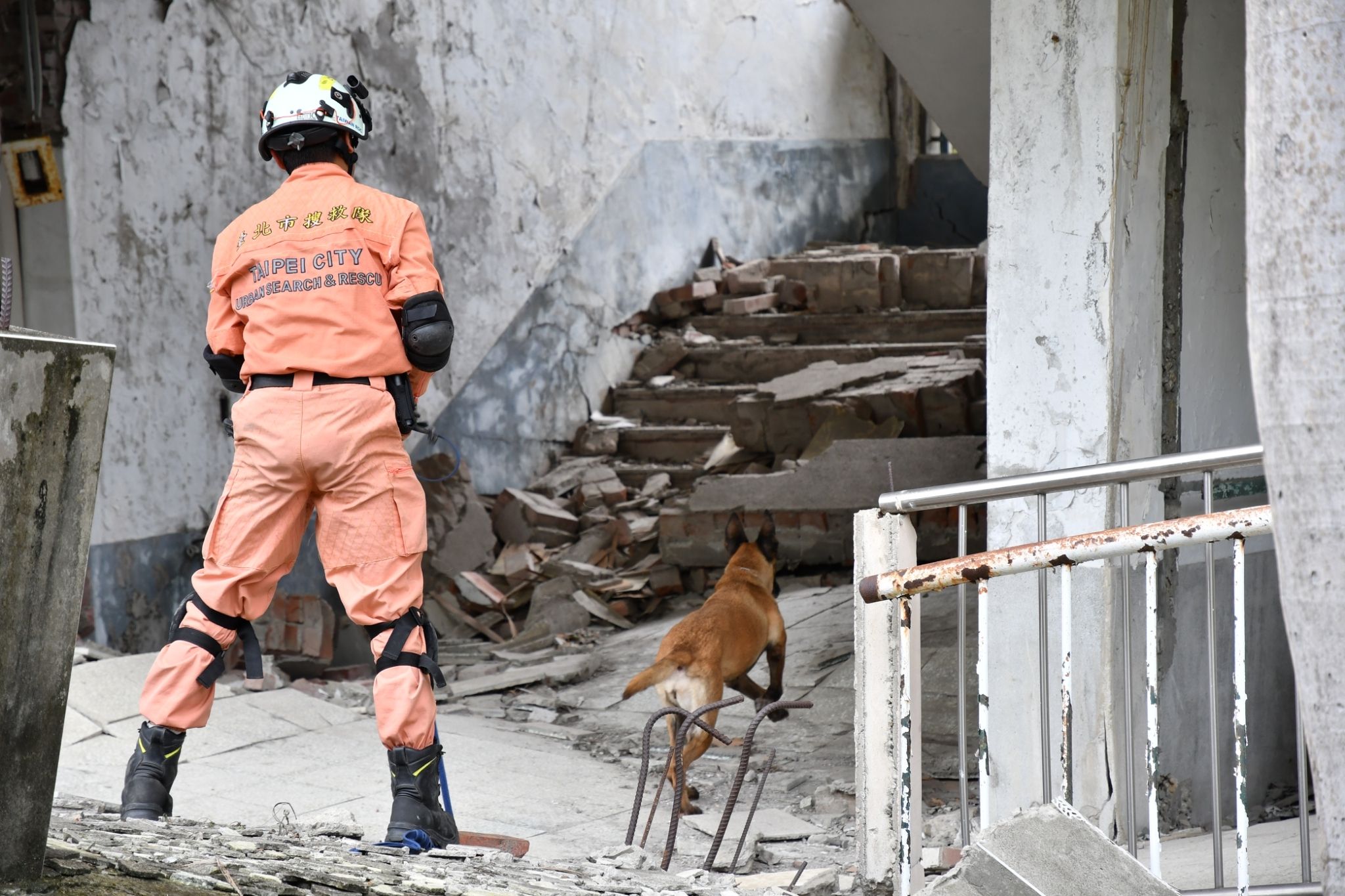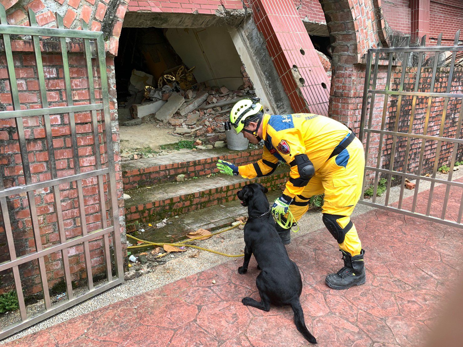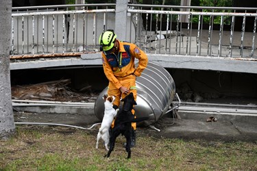 領犬員帶領搜救犬歷經4天在台中搜救犬隊訓練場,以及921地震園區及集集武昌宮等2處真實地震受創建築物進行訓練,今(12)日圓滿結訓。中市府消防局表示,台中領犬員及搜救犬自105年開始培訓以來,即與台北市搜救犬隊維持合作關係,雙方定期辦理研習活動、混合組隊、移地訓練等來增強訓練效果。