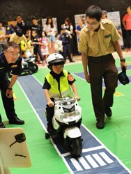 今日「小小警察體驗營」首梯次活動,特別邀請副市長陳子敬,帶領小朋友體驗騎乘警用哈雷小重機,教導孩子們交通安全的重要性,小朋友穿上「迷你版」警察制服、騎乘警用哈雷小重機,模樣十分可愛。