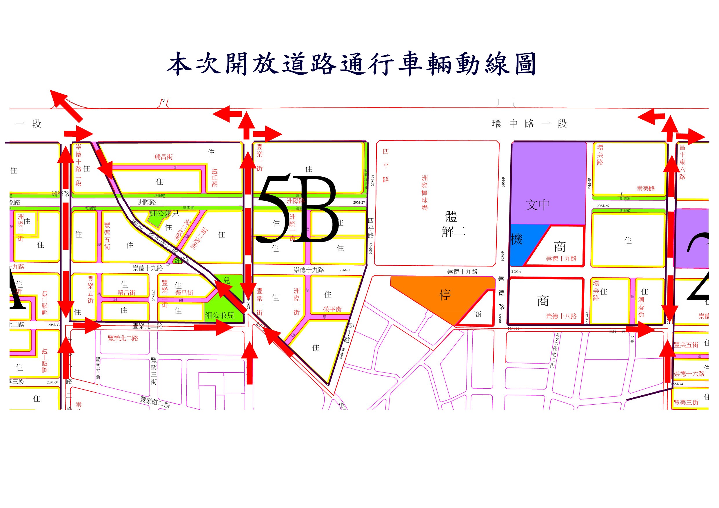 建設局長陳大田表示,此次開放主要道路範圍包括昌平東六路(崇德十八路至環中路)、豐樂一街(昌平路二段至環中路)、崇德十路二段(豐樂北二路至環中路),明日早上9點起至下午4時,陸續完成道路阻絕設施遷移,道路開放後,將可有效疏解松竹路與昌平路車流及改善地方交通。