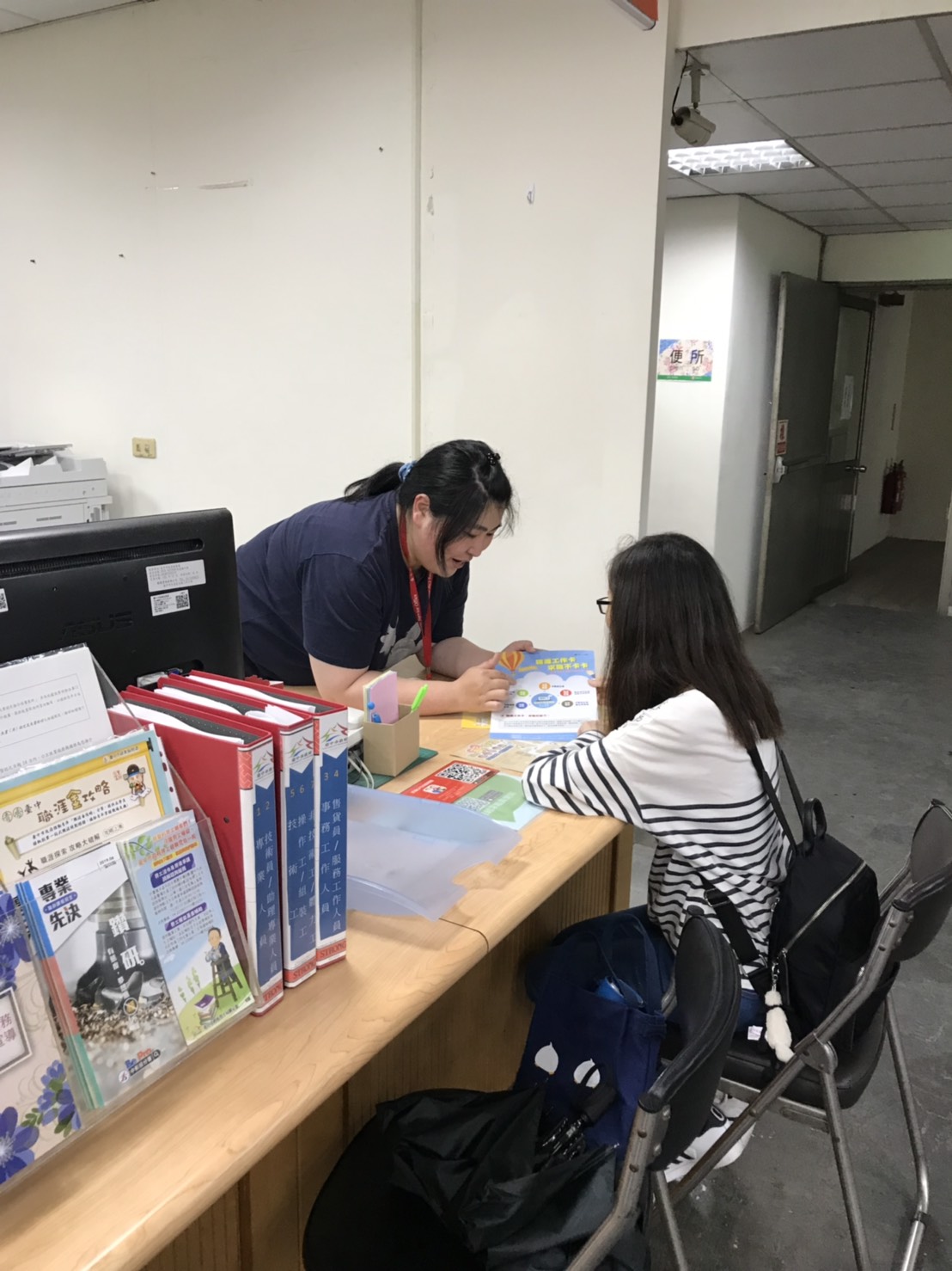 小媛因先天性聽力障礙,求職之路坎坷,台中市就業服務處東勢就業服務台提供她6個月時間到公部門服務,培養自信及就業職能。這段期間,就服員小謝與專管人員小張兩人仍持續關懷小媛,並根據她的工作狀況協調進用公司、調整工作項目及內容,並在短期計畫結束前,幫助她找到友善廠商及提供職涯工作卡服務,並陪同小媛參加面試,讓她如願以償進入一所高中擔任行政助理,小媛也因符合青年穩定就業獎勵的資格,順利領取到「台中市獎勵青年穩定就業計畫」獎勵金。