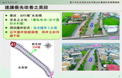 水利局表示,為與地方進行雙向溝通,特別於今年6月27日邀集地方議員、區公所、里長及當地民眾到梧棲區永元宮召開地方說明會,過程除說明目前辦理情形及未來整治方向,獲得地方支持外,同時採納地方意見,加強植栽綠美化,並增設景觀平台,提供鄉親休閒遊憩使用。
