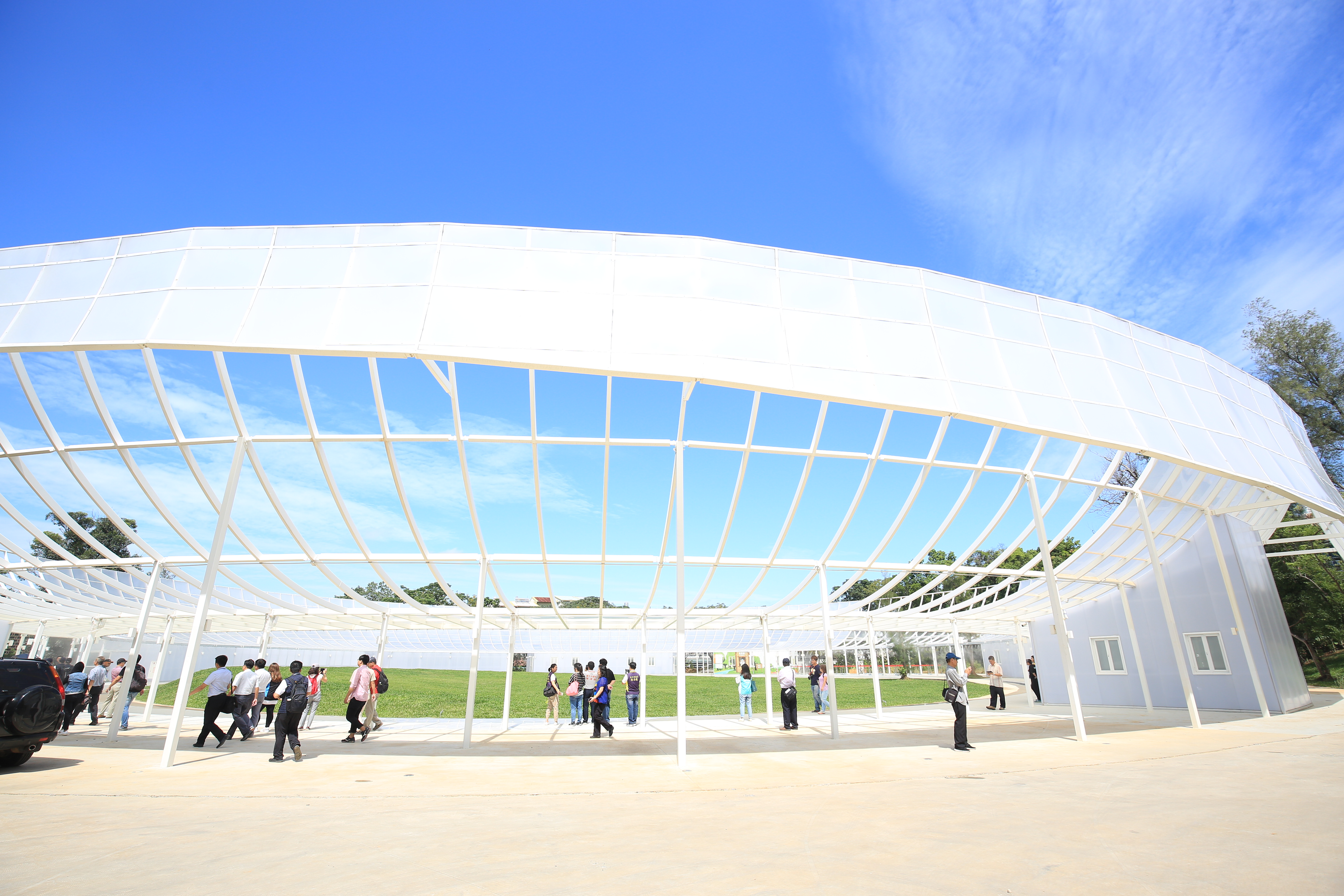 此外,台中花博后里園區永久館「花舞館」由兩棟圓形構築結合鑲嵌而成,A棟大圓建築表面包覆三度空間變化的金屬格柵,如一朵盛開的花;B棟小圓建築則透過輕透的白色格柵,展現出與大圓建築不同的量體表情。大圓小圓鑲嵌交錯組成,猶如盛開的花朵般舞動變化。入夜後的花舞館,投射燈光照映在大小圓外觀格柵,配合室內燈光呼應,在夜色中突顯建築物輕柔優雅的量體感,提供民眾舒適完善的休閒遊憩場所。因「花舞館」是永久館,採不拆遷原地保留,也將做為2020台灣燈會場館。